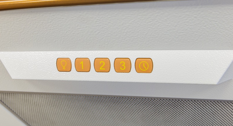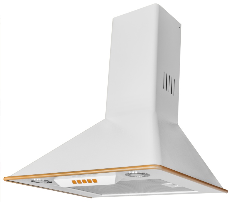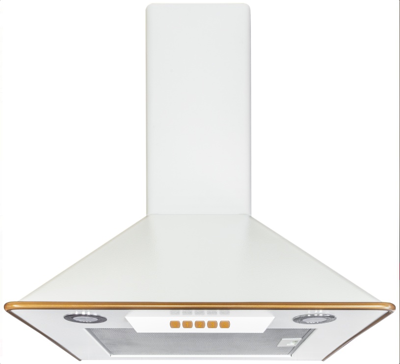 Вытяжка выполнена в белом цвете с отделкой бронзового цвета и она может работать не только в режиме отвода в вентиляцию, но и в режиме рециркуляции.