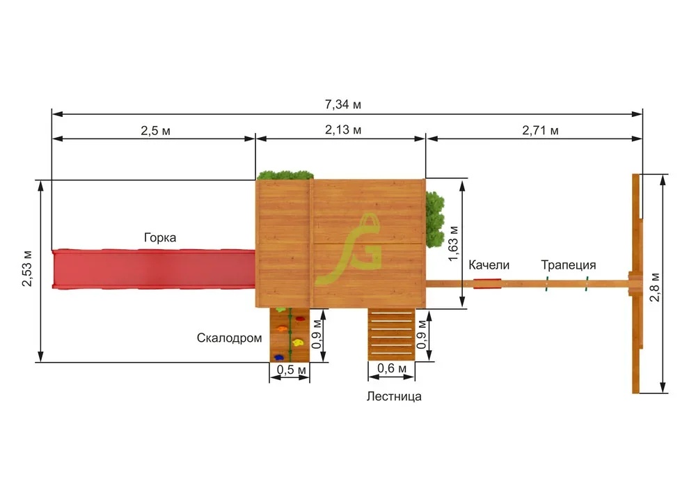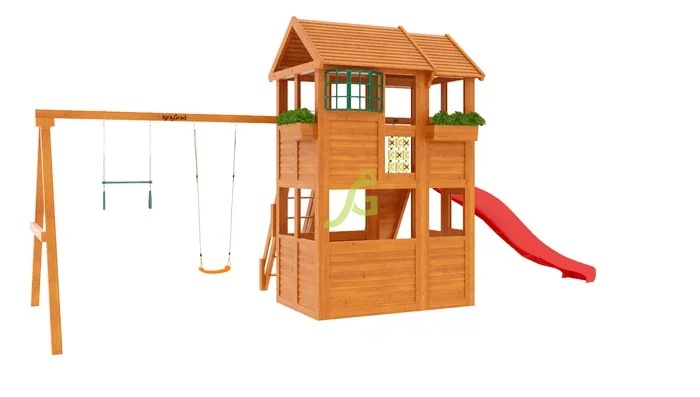| - Закрытый двухуровневый игровой домик с дверью, деревянной крышей; | |