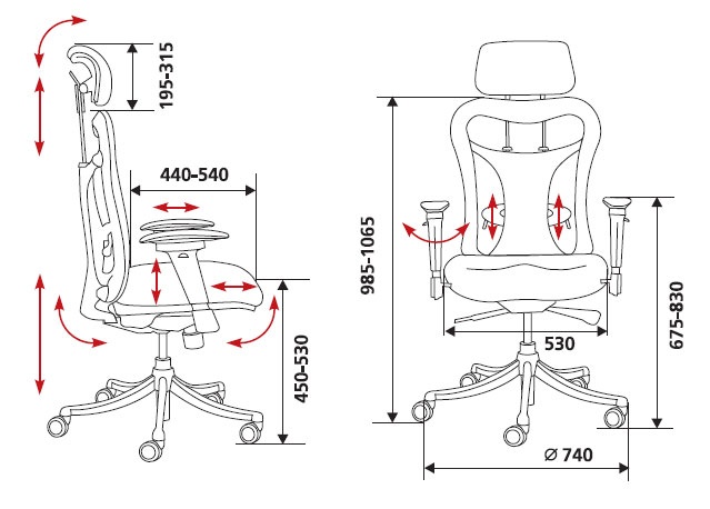 Регулировка подлокотников в горизонтальной плоскости и по высоте