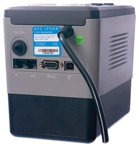 ИБП IPPON Back Verso 600 рекомендованы как для офисного, так и для домашнего использования и позволяют подключать до шести (!) устройств одновременно: 4 евро-розетки обладают батарейной поддержкой и ещё 2 дополнительные розетки ограничены функционалом сетевого фильтра. Также предусмотрены специальные гнезда для защиты телефонной линии.