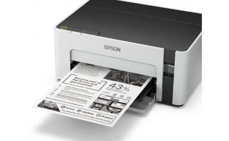 Монохромная Фабрика печати Epson М1100 — это компактный и удобный в использовании струйный принтер с большими емкостями для чернил объемом 120 мл. вместо картриджей.