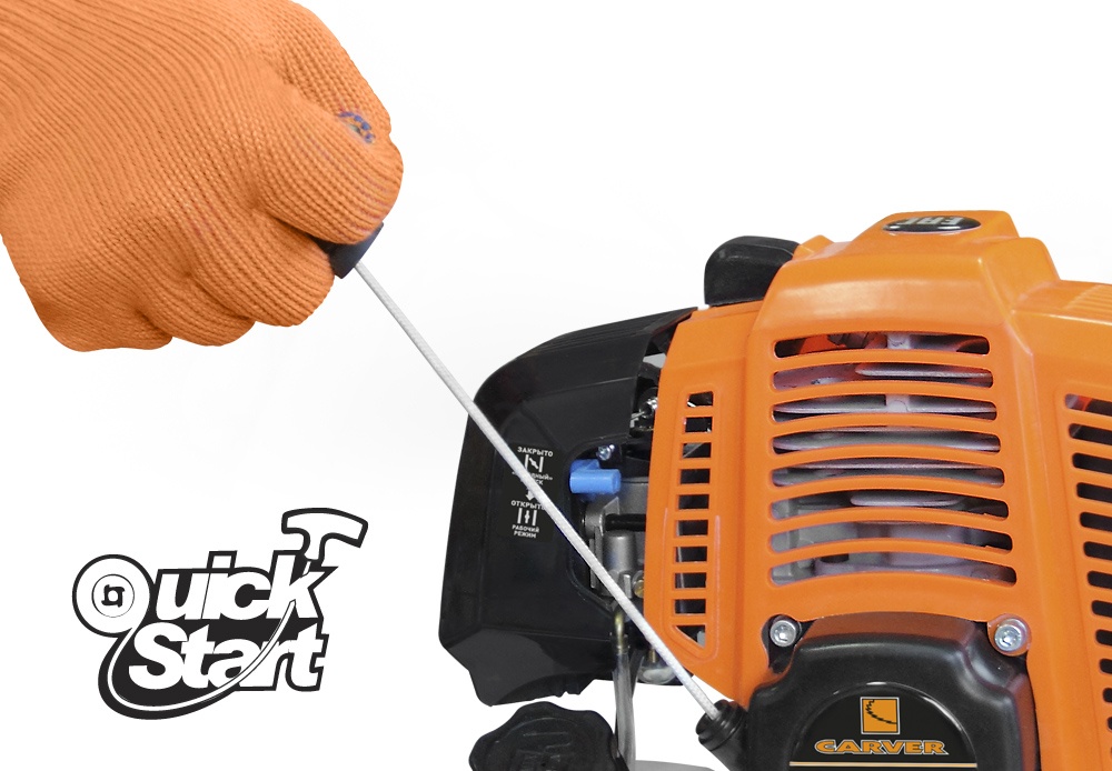 Бензокоса Carver GBC-043M оснащена системой QuickStart, компенсирующей противодействие двигателя при запуске. Технология пористого хромирования внутренней поверхности цилиндра двигателя обеспечивает увеличение износостойкости цилиндро-поршневой группы в 3-5 раз.