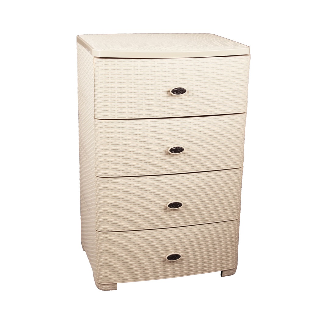 Комод "Плетёнка" 4-х секционный широкий (слон.кость) М4059.