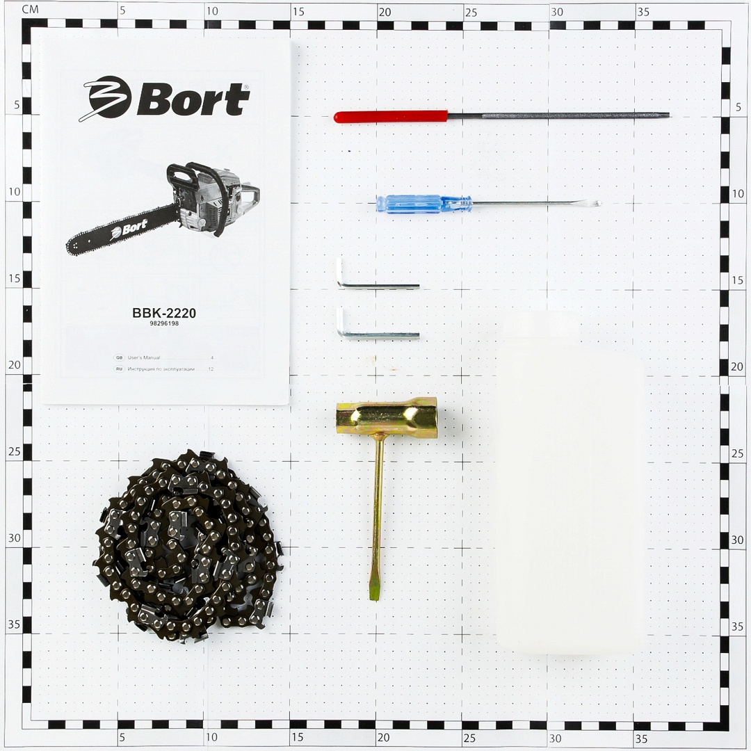 Цепная бензиновая пила Bort BBK-2220 - мощный инструмент для работы с деревом. Пила похожа на BBK-2018, но отличается повышенной мощностью и длиной шины.