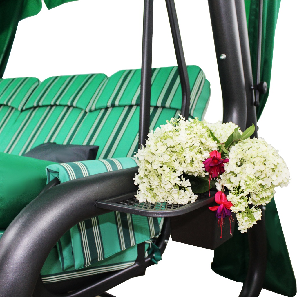 Впервые в качели используются дополнительные подставки под горшки (которые тоже включены в комплектацию качели). Можно высадить любимые цветы или же использовать как емкость под лед для бутылок.