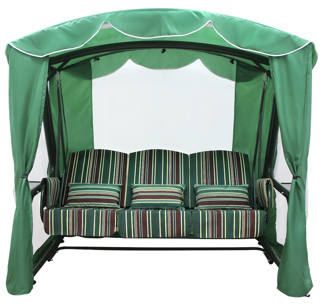 | Комплектация | 3 подушки-кресла с оборкой (увеличенная спинка, закругленный вверх), тент с антимоскитной сеткой, 2 больших подлокотника, 3 дополнительные подушки, светодиодный фонарь, 2 подстаканника, 2 металлических тентодержателя |