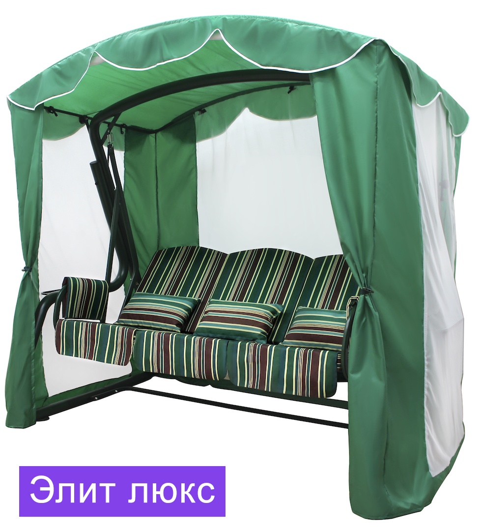 Садовые качели Элит — это оптимальное соотношение цены и качества, прочная и надежная конструкция изготовленная из металлической трубы диаметром 63 мм с максимальной нагрузкой 350 кг, удобные мягкие сиденья из водонепроницаемой ткани, высокое качество покраски, каркас сиденья прочная металлическая решетка и непревзойденный дизайн.