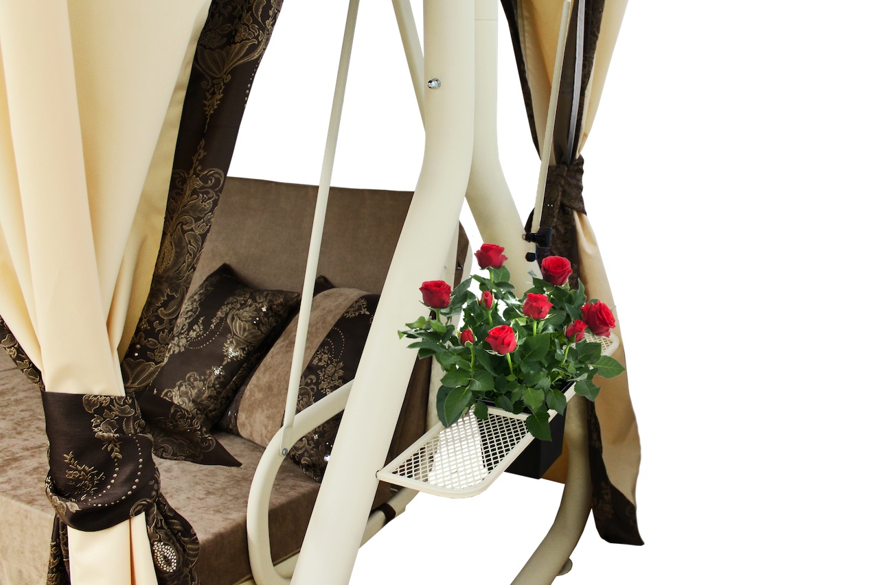 Садовые качели "Мадемуазель" сочетает в себе все черты аристократической роскоши и прагматизма. Идеально подходит тем, кто ценит эксклюзив и совершенство, свободу выбора и высокий статус.