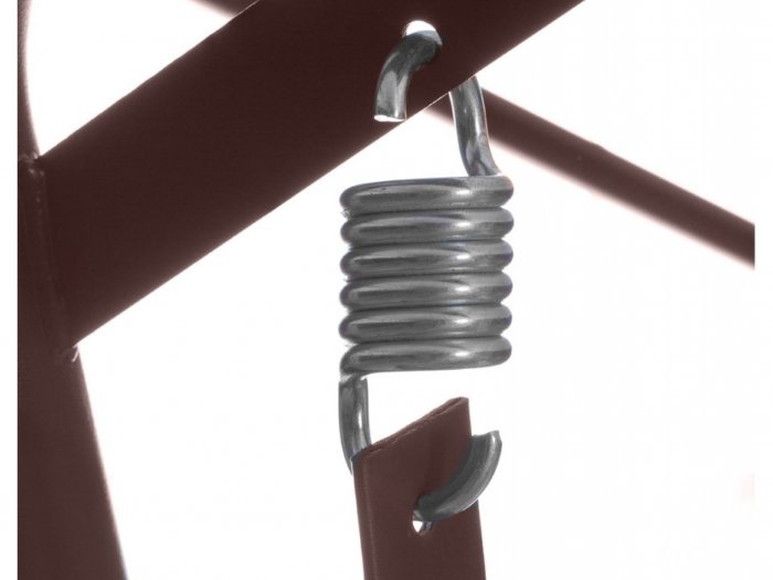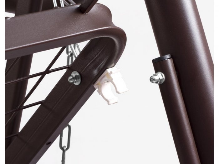 Наполнение матраса Холофайбер, толщиной 60 мм. Чехлы с сидения снимаются, поэтому если захотите, можете их постирать. В модели предусмотрена москитная сетка, удобно застегивающаяся на молнию. Если вам не нужна защита от мух и комаров, вы легко можете ее подвязать к тенту. Узел регулировки тента имеет добавочную штангу, позволяющую надежно фиксировать положение тента и сохранять его под определенным углом. Такое устройство узла исключает парусность конструкции, что является дополнительной защитой от переворачивания качелей вследствие ураганного или просто сильного ветра.