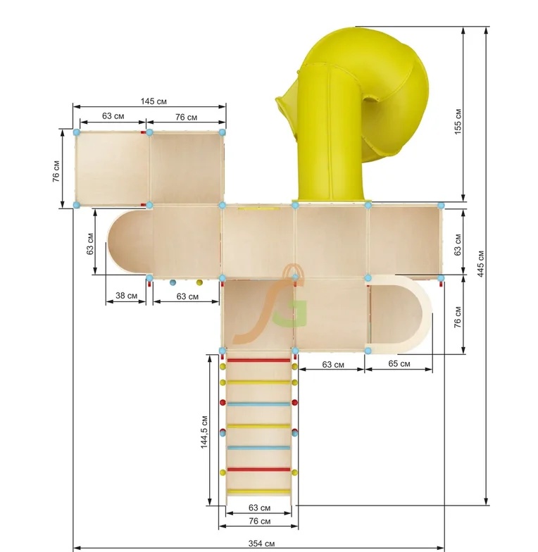 | Внутри конструкции предусмотрен лабиринт, который дети с большим удовольствием захотят проходить по несколько раз в день. Это один из лучших способов, способствующего физическому развитию; | |