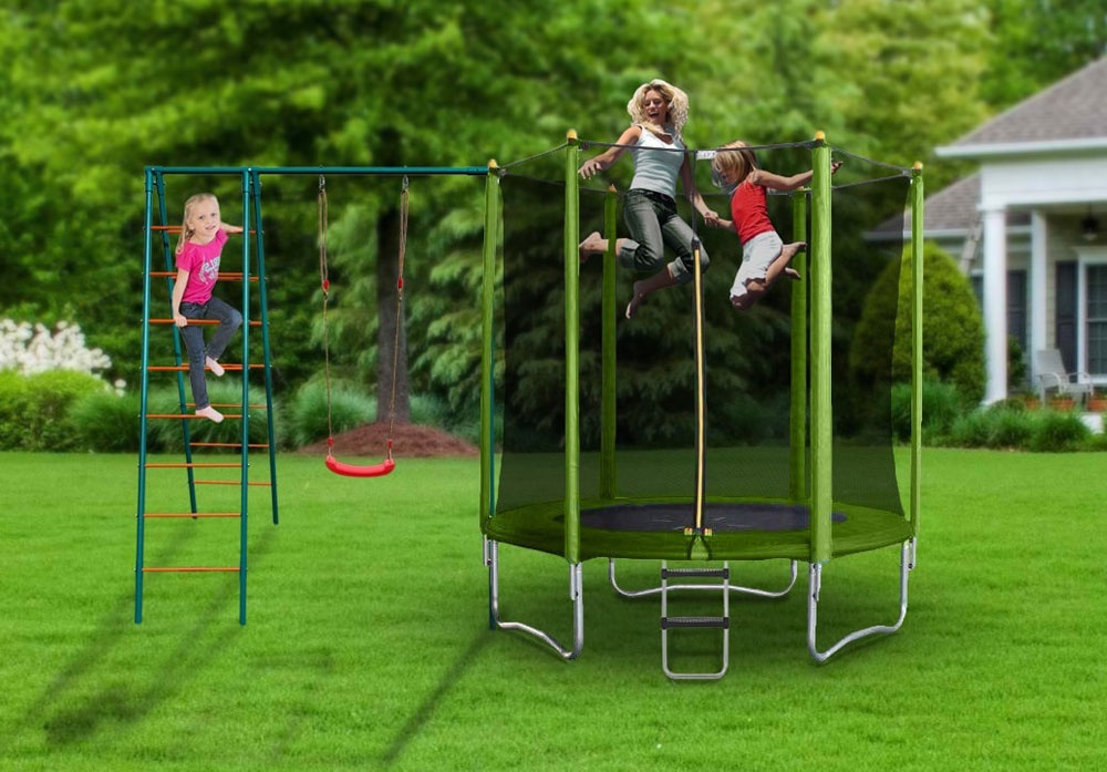 Дополнение "Кузнечик" к батутам "Оптима" и "Космо", представляет собой надежную металлоконструкцию, выполненную из электросварных труб диаметром 40 мм и толщиной стенки 1,5 мм, окрашенных порошковой краской, устойчивой к ультрафиолетовому и уличному воздействию.