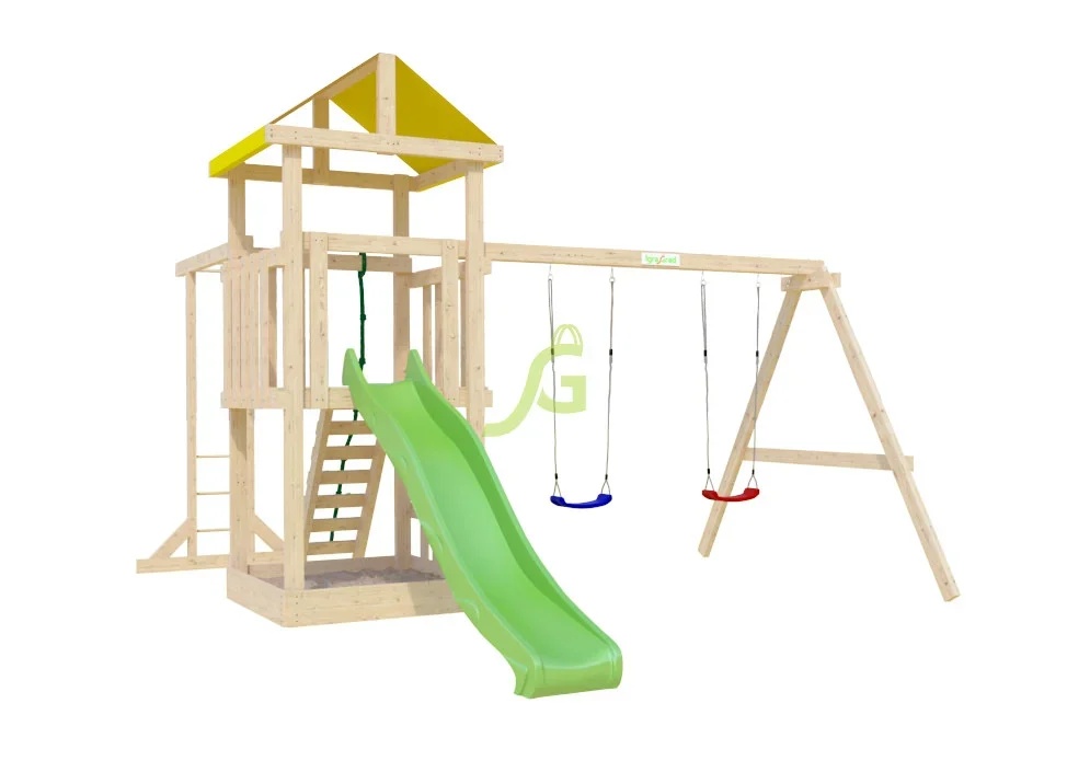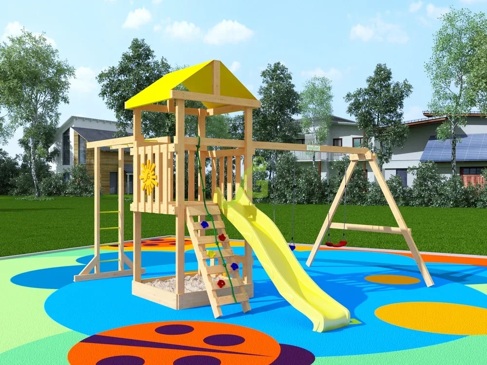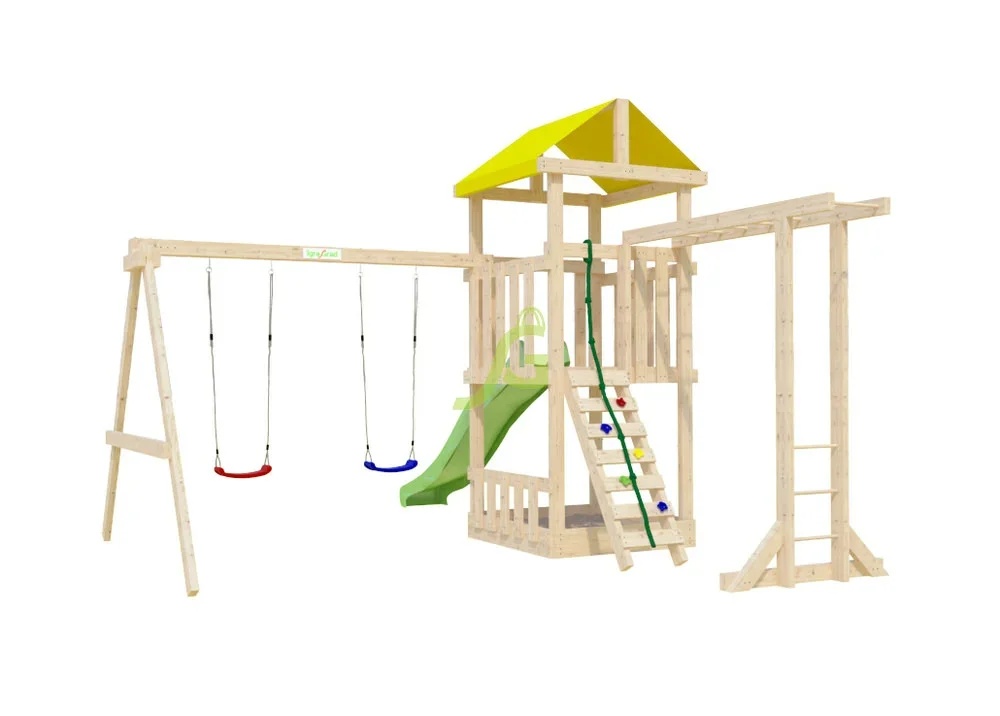 Бюджетная линейка площадок "Собери сам" с минимально необходимым набором игровых снарядов.