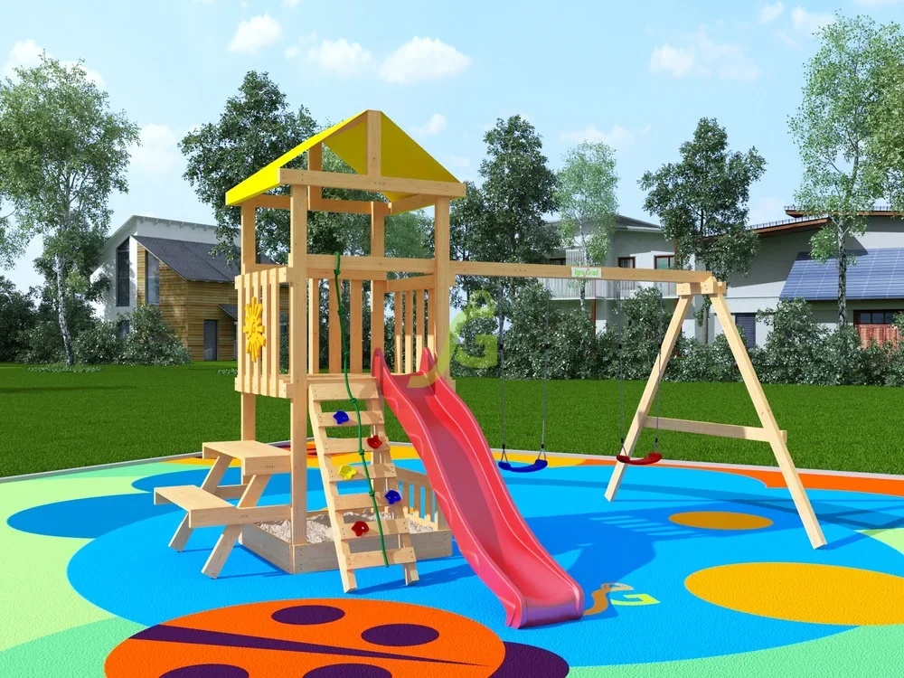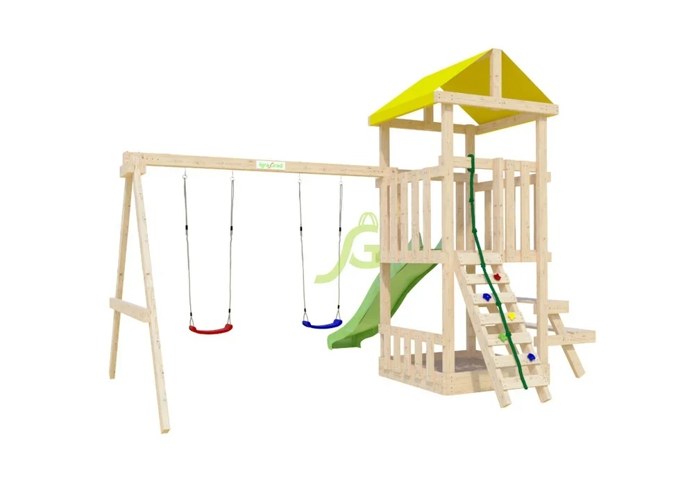 Бюджетная линейка площадок "Собери сам" с минимально необходимым набором игровых снарядов.