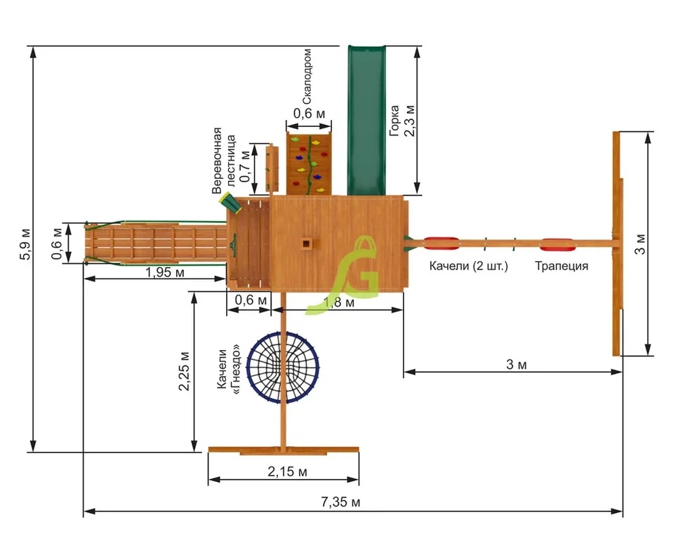 Смотрите так же: IgraGrad "Шато Sun" (Дерево) за 189000 рублей, IgraGrad "Шато 2" за 196900 рублей, все цены на уличные ДСК.