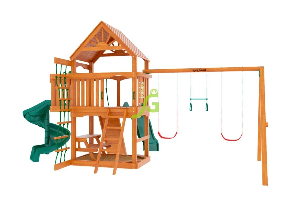 Смотрите так же: IgraGrad "Шато 2" за 196900 рублей, IgraGrad "Пиратский дом" (Дерево) за 216300 рублей, все цены на уличные ДСК.
