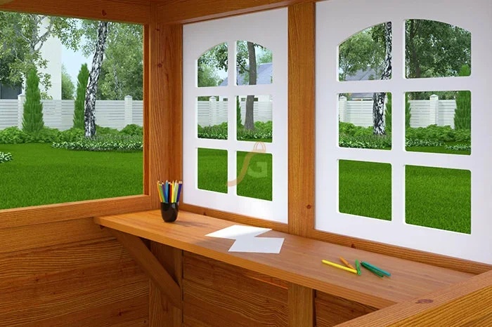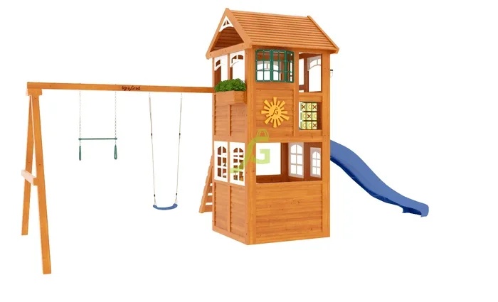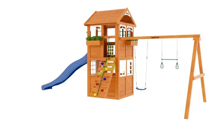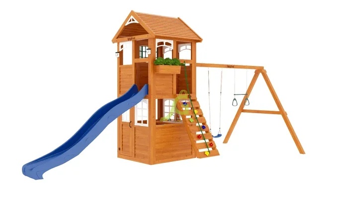 Детская площадка для дачи "Клубный домик Luxe" – это компактный вариант игровой зоны на дачном участке или небольшом дворе. Несмотря на свои скромные параметры, площадка удачно вмещает в себя двухуровневый деревянный домик с трехметровой волновой горкой, лестницу-скалодром для любителей верхолазов, любимые всеми качели, трапецию с кольцами, а также развивающую игровую доску "Крестики-нолики". Детская площадка для дачи "Клубный домик Luxe" включает: - Закрытый двухуровневый игровой домик с дверью, деревянной крышей; - деревянное кашпо; - волновая горка S-line 3 м; - деревянная лестница-скалодром; - канат; - качельный модуль; - пластиковые одиночные качели (1 шт.); - трапеция с кольцами (1 шт.); - доска для игры в “Крестики-нолики”; - пластиковые окошки; - игровой столик; - фонарики на солнечных батареях; - декоративное солнышко; - комплект фурнитуры; - руководство по сборке;