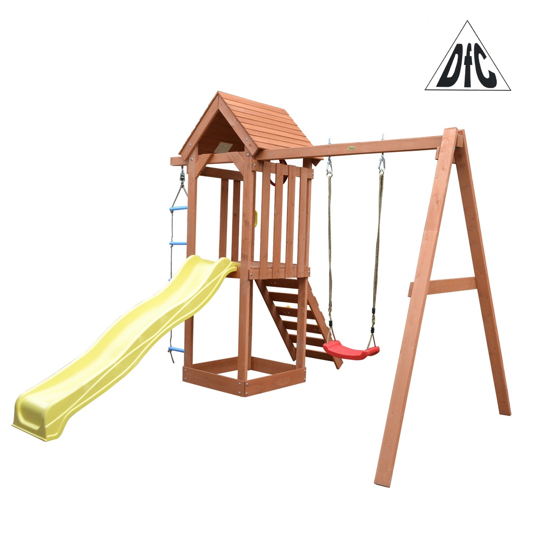 Детская игровая площадка DFC серии PLayWood — полноценный мини-городок для активного досуга детей дошкольного возраста. Рекомендуется детям с 3 лет.