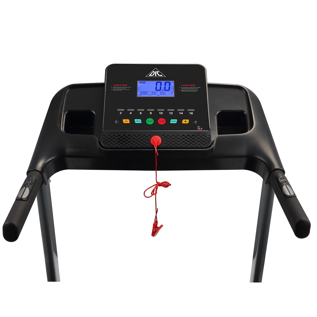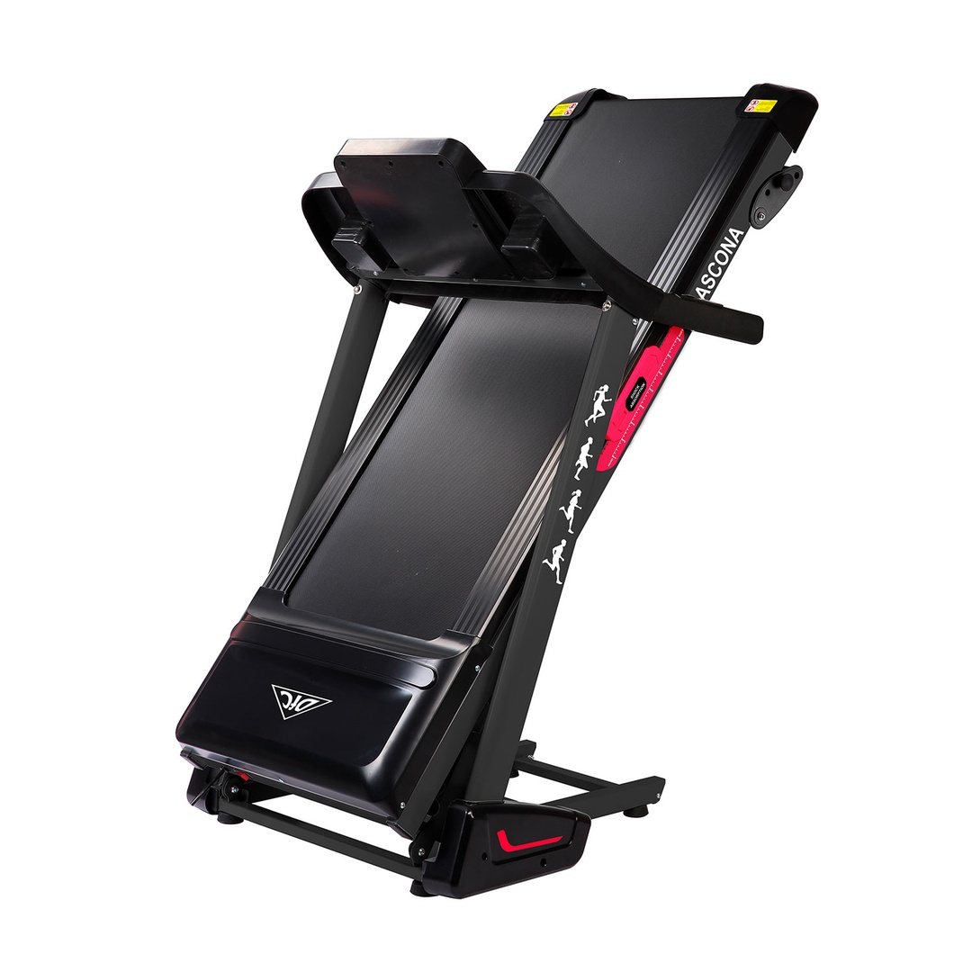 Представляем новую беговую дорожку от популярного бренда DFC - модель ASCONA. Дорожка предназначена для домашнего применения. В арсенале модели встроенный двигатель постоянного тока мощностью 2,5 л.с. При пиковых нагрузках мощность увеличивается до впечатляющих 3,25 л.с. Угол наклона бегового полотна изменяется вручную, всего предусмотрено 3 положения. Встроенные динамики звуковой системы и возможность подключения дополнительных устройств через MP3-разъем помогут провести тренировку под любимую мелодию. Амортизация с регулировкой жесткости поможет сохранить суставы про время продолжительной тренировки. Два комплекта встроенных в поручни датчиков пульса позволят следить за частотой сердечных сокращений. Такие датчики имеют определенную погрешность. Для точности показаний рекомендуем приобрести нагрудный пояс с монитором в форме часов DFC W117. На поручнях так же расположены "быстрые кнопки" - это кнопки запуска и остановки бегового полотна, а так же кнопки изменения скорости. Это позволяет не отрывать руки с поручней во время занятий не тренажере. Дорожка имеет складную конструкцию для экономии жизненного пространства с помощью гидроцилиндра. И встроенные колеса для перемещения дорожки после тренировки.