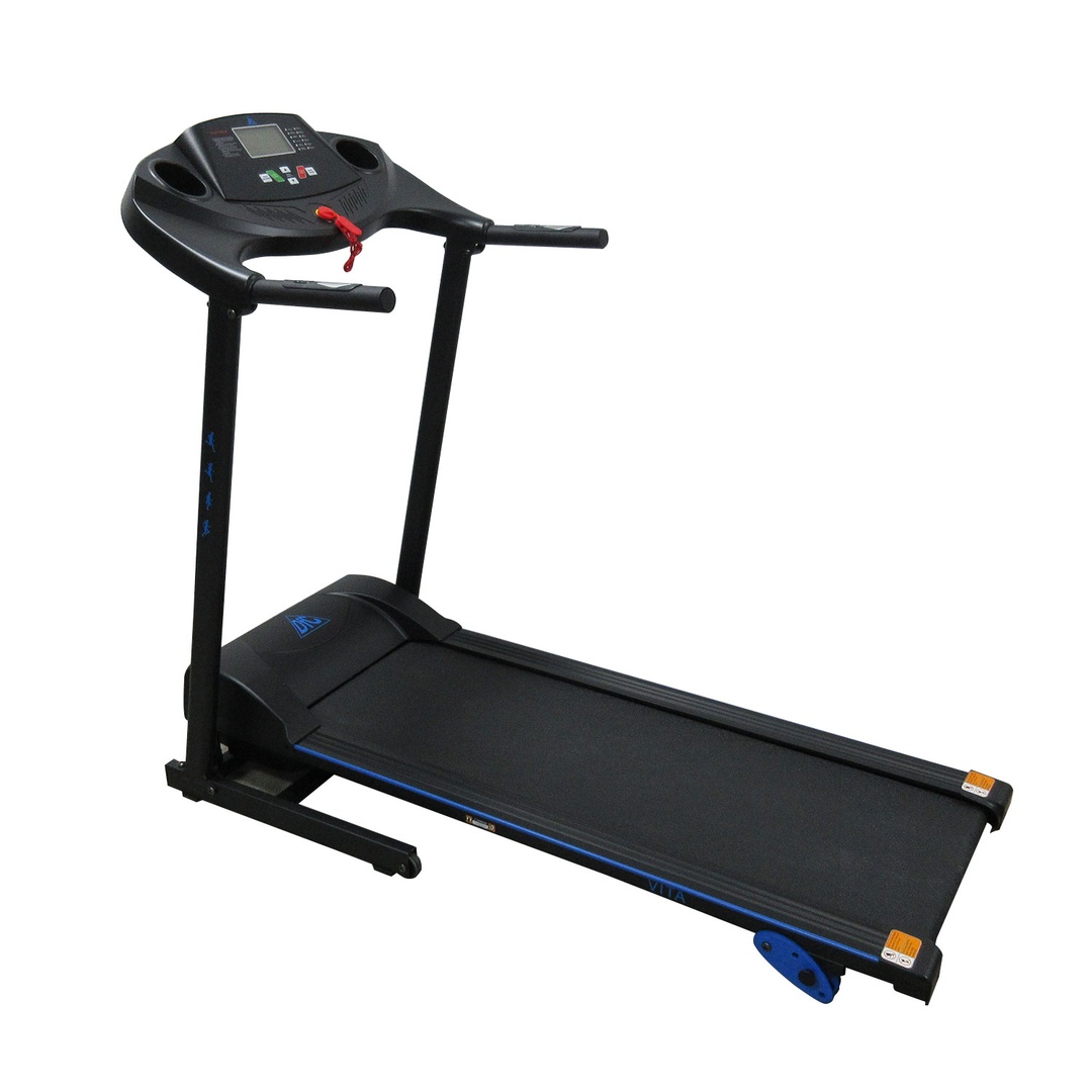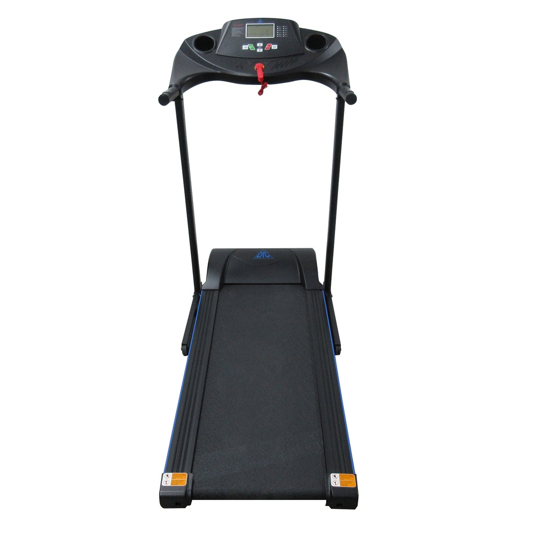 Электрическая беговая дорожка для занятий дома. Тренажер начального уровня с мотором мощностью 1,5 л.с. 12 встроенных программ и возможность регулировки угла наклона бегового полотна помогут разнообразить ваши тренировки. Складная конструкция с помощью встроенного амортизатора позволяет поднять полотно после тренировки и экономить пространство до следущего занятия. На поручнях расположены датчики пульса. Для точности измерения частоты сердечных сокращений (ЧСС) во время тренировки рекомендуем приобрести отдельно набор DFC W117: кардиопояс + часы - монитор. Бутылку воды или смартфон во время тренировки возможно хранить в удобных кармашках по краям от панели управления.