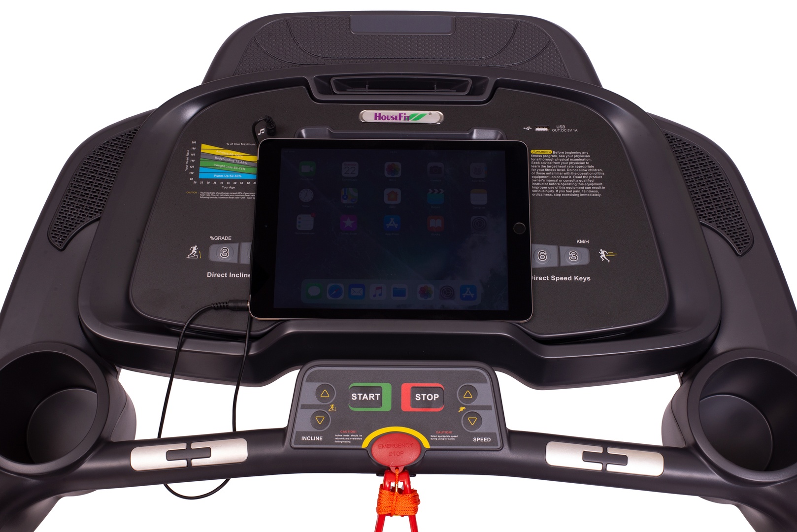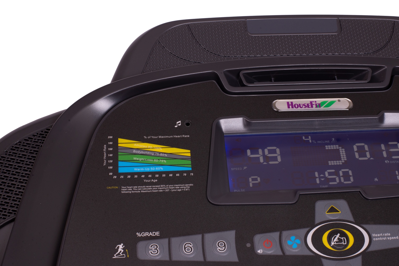 Мощная беговая дорожка Housefit SPIRO 460 для занятий дома сочетает в себе простоту, функциональность и комфорт в использовании.