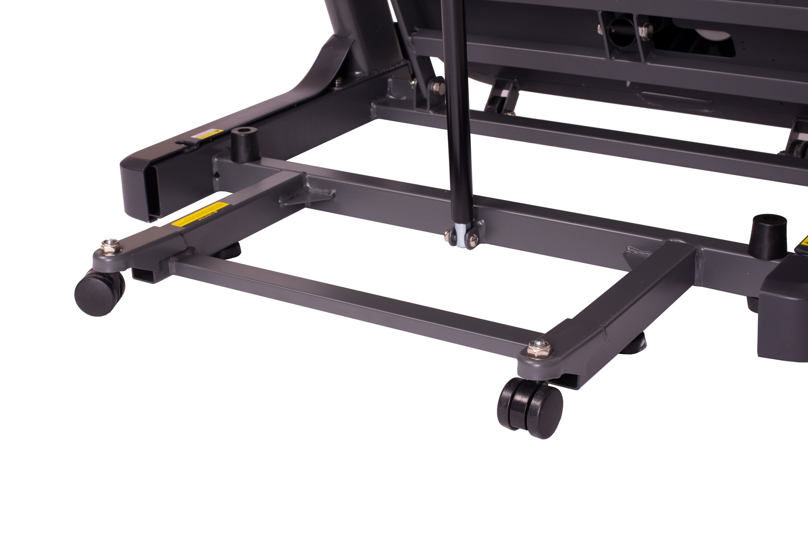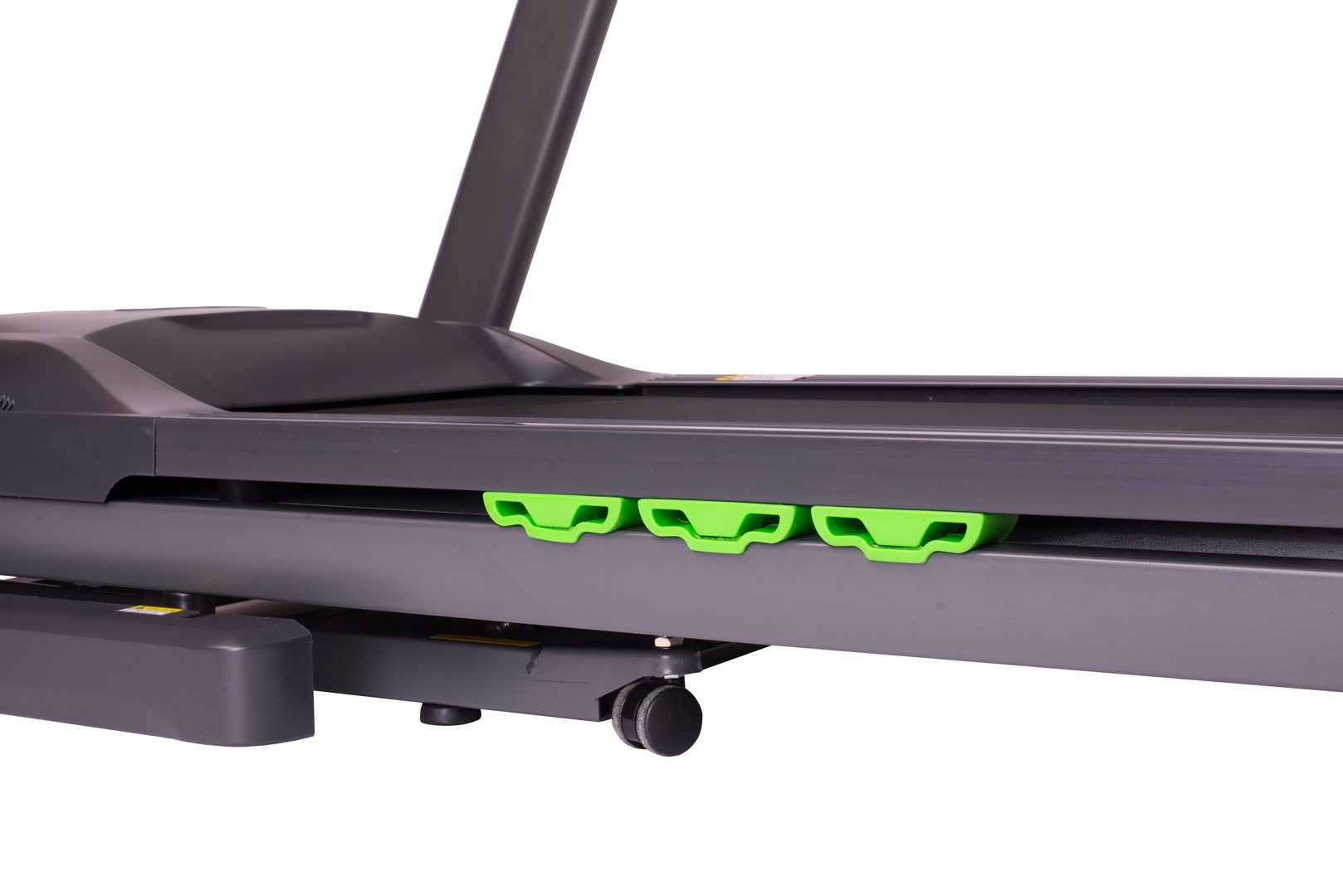 К другим особенностям относится гидравлическая система складывания, которая существенно облегчает складывание дорожки, а при раскладывании обеспечивает медленное опускание бегового полотна.