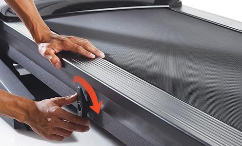 Благодаря запатентованному новаторскому дизайну, тренажёр можно сложить и поставить вертикально. Также беговая дорожка имеет мощный амортизатор, позволяющий с лёгкостью поднять платформу..
