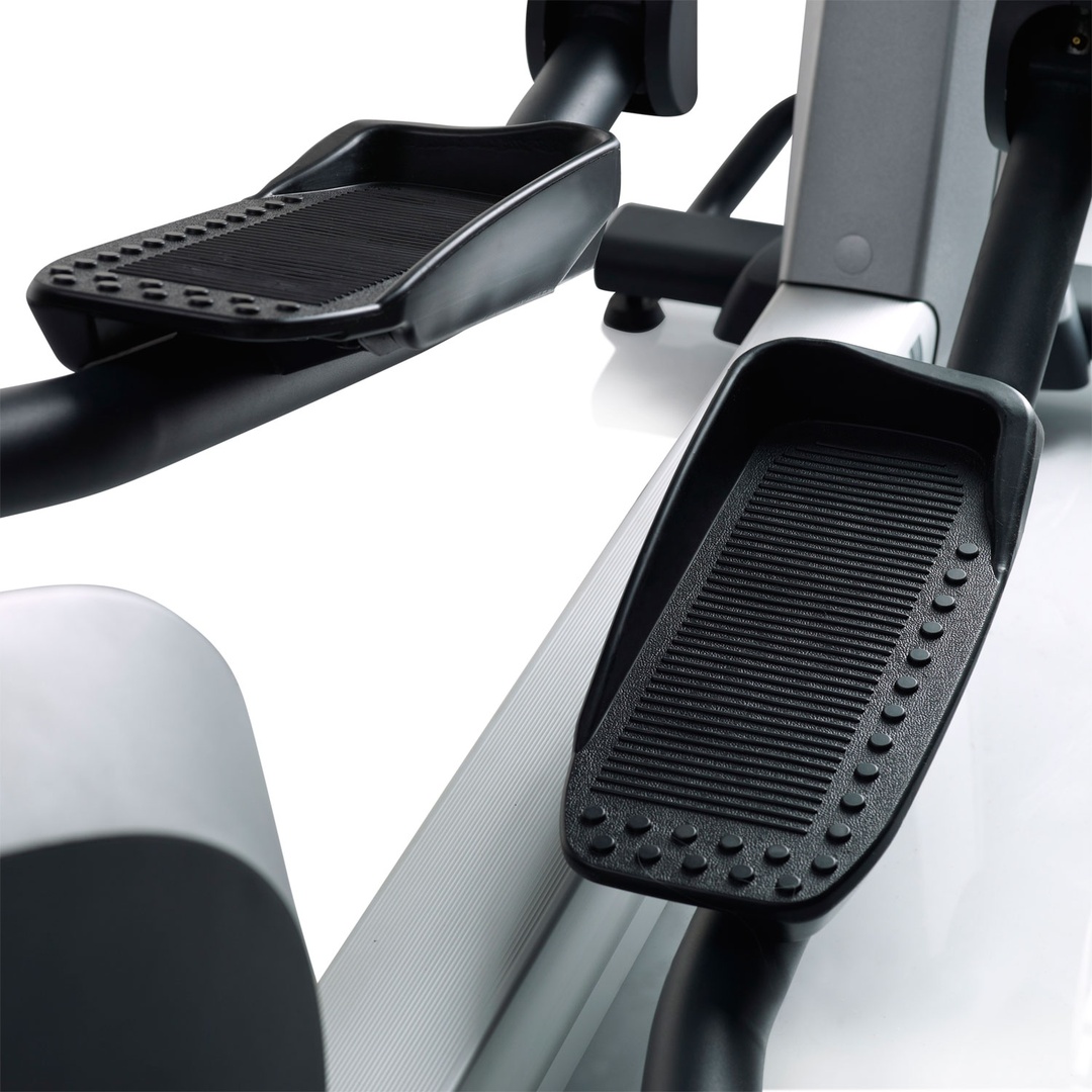 В комплектацию тренажёра входят боковые рычаги, которые предусмотрены для низкоинтенсивных тренировок всего тела. Эллиптический тренажёр задействует почти все мышечные группы, помогает сжечь больше калорий и привести мышцы в тонус.