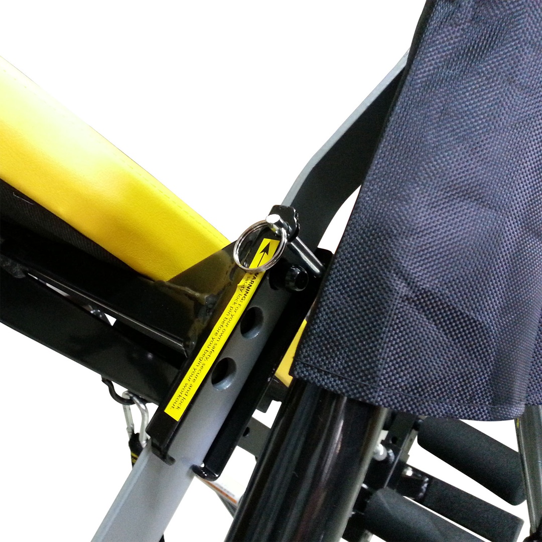 Рост пользователя от 140 до 196 см. Вес пользователя до 110 кг. Новая модель складного инверсионного стола с ограничением угла наклона с помощью ремешка.
