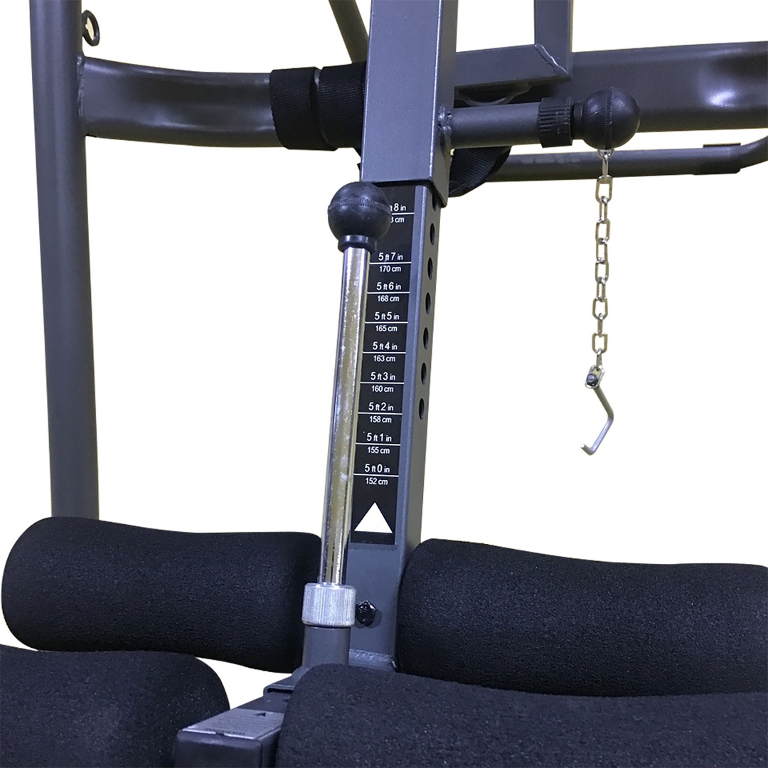На данной модели инверсионного стола предусмотрен выбор режима инверсии (с помощью ремня и стержня): легкий (угол до 22 гр), средний (угол от 22 до 55 гр), профессиональный (от 55 гр).