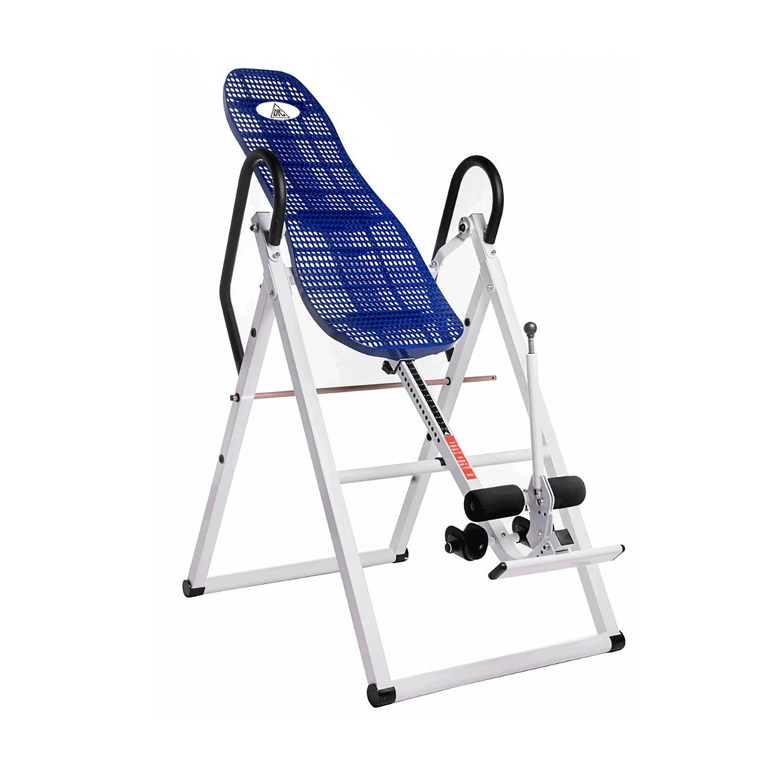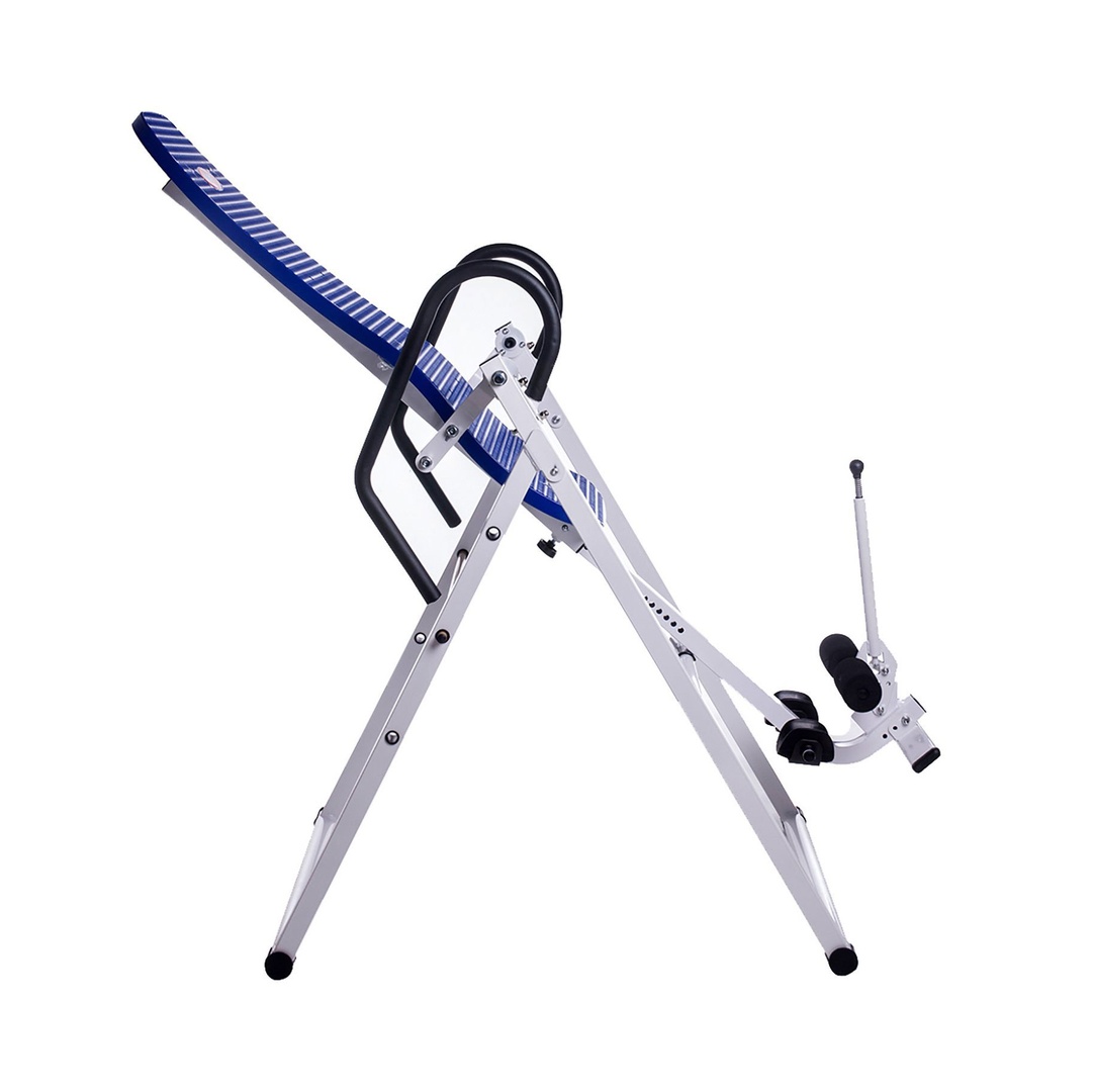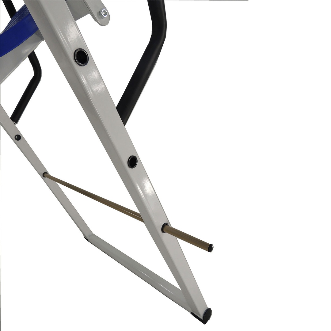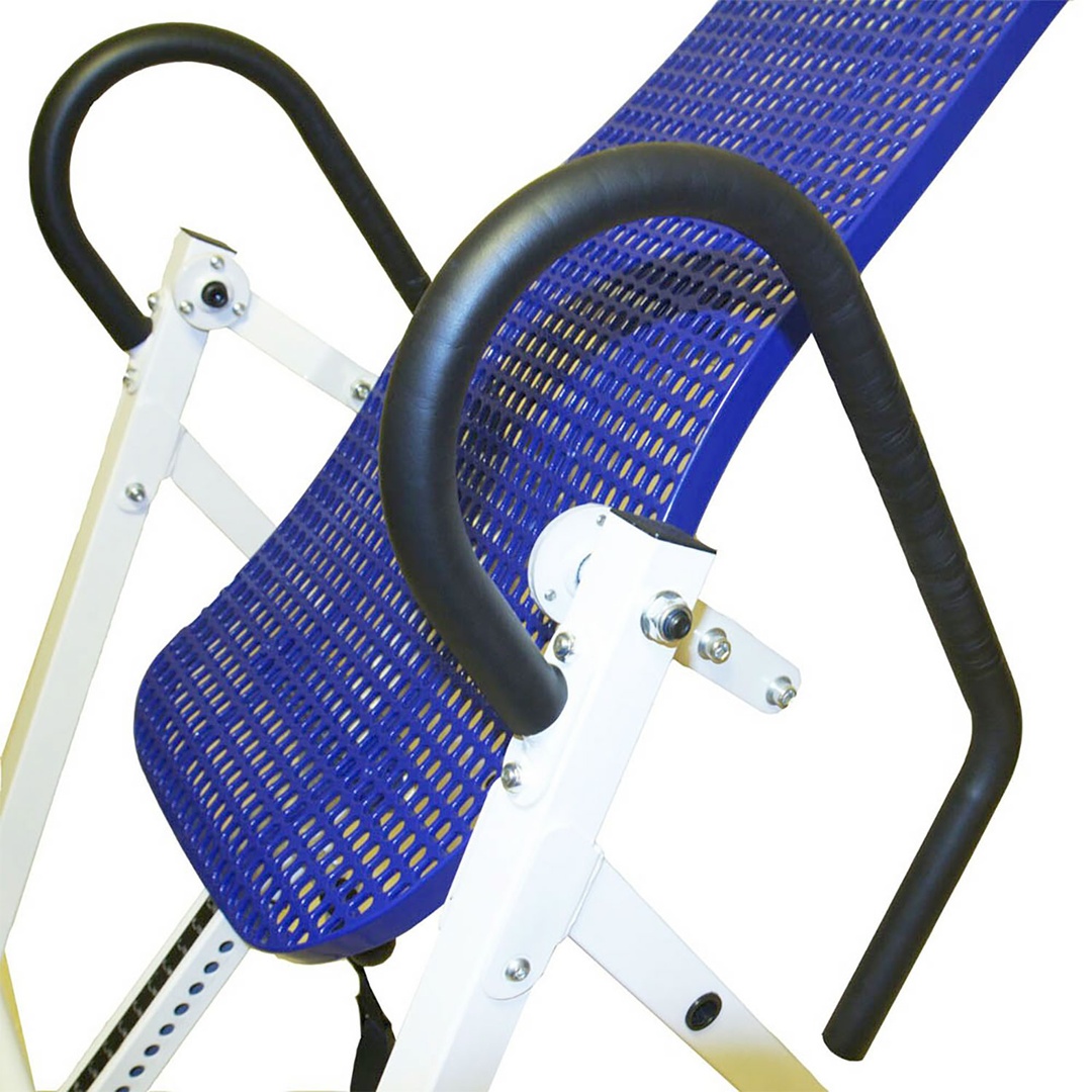 Стол позволяет зафиксировать нужный угол наклона с помощью ограничительного ремня. Если ремень не устанавливать, то возможно отклонится в вертикальное положение (головой в пол). Для того, чтобы стол отклонился на необходимый вам угол, его необходимо заранее установить: наклоняете спинку до нужного угла, выбираете лишнюю длину ремня с помощью пряжки и возвращаете стол обратно в исходное положение. Дополнительно есть возможность установить угол наклона с помощью металлического ограничителя, предусмотрено 3 фиксированных угла.