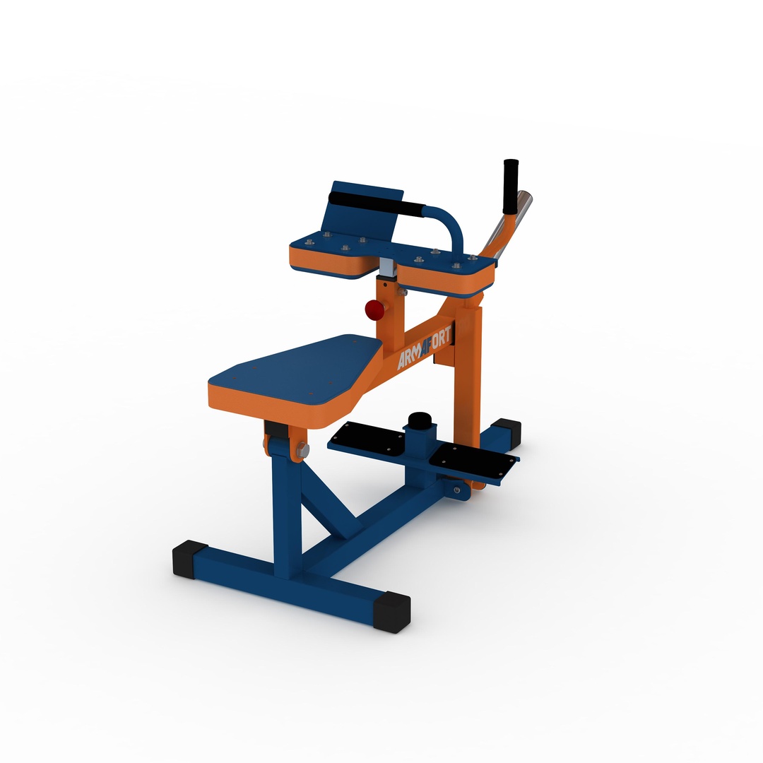 «Икроножная машина» тренажер предназначен для изолированной тренировки мышц голени: камбаловидной и икроножной.