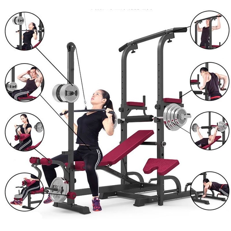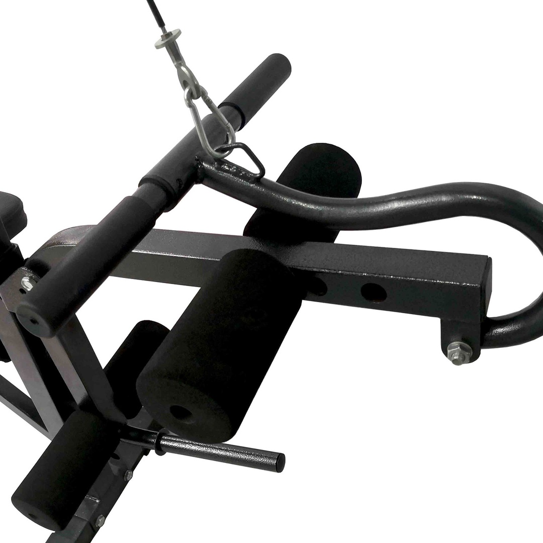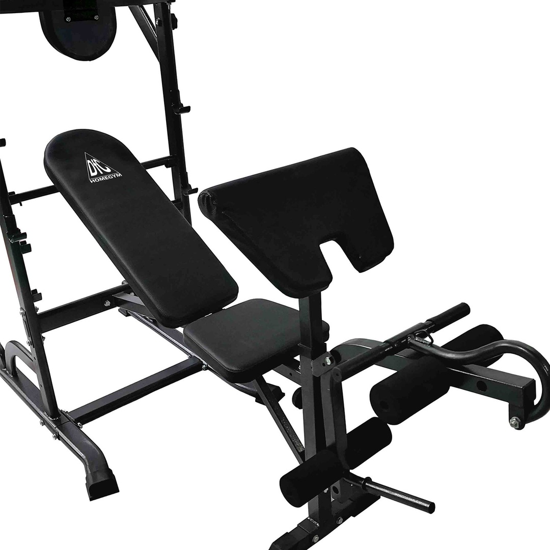 Для выполнения силовых упражнений в комплекте поставляется тяга сверху и парта для бицепса. В качестве нагрузки используются весовые диски с посадочным диаметром 31 мм (диски приобретаются отдельно). Так же можно выполнять упражнения жим ногами.