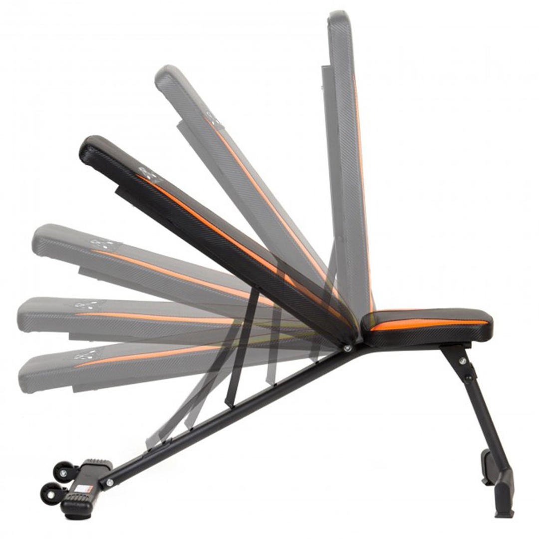 Сиденье скамьи регулируется по углу наклона в широком диапазоне. Фиксация в нужном положении с помощью упора с обратной стороны скамьи. 6 положений.