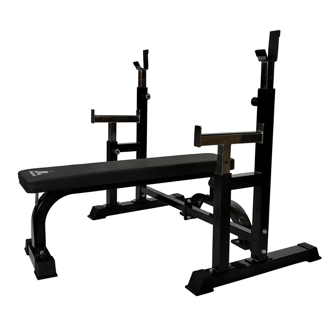 Позволяет выполнять широкий спектр упражнений со штангой. В комплекте поставляется прямая силовая скамья и силовая стойка для штанги.