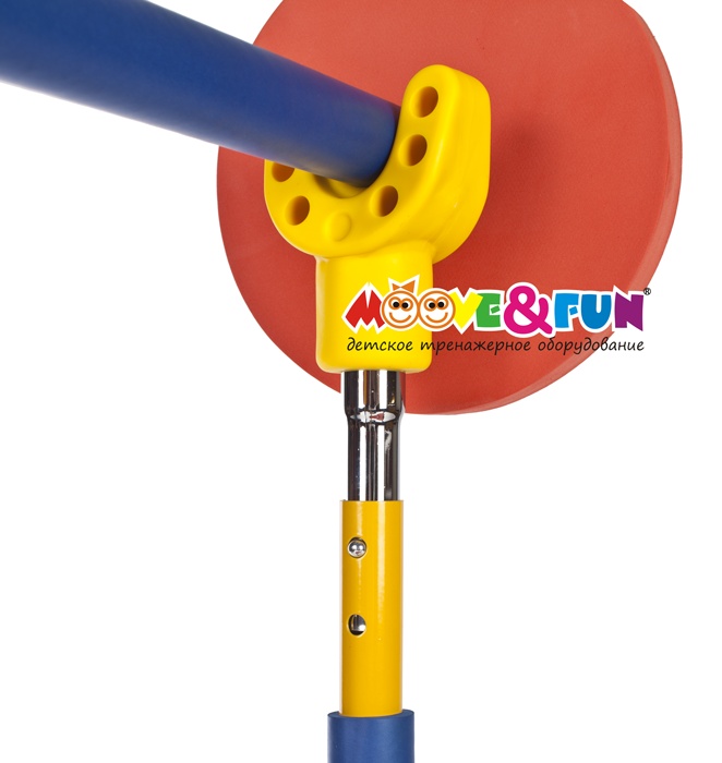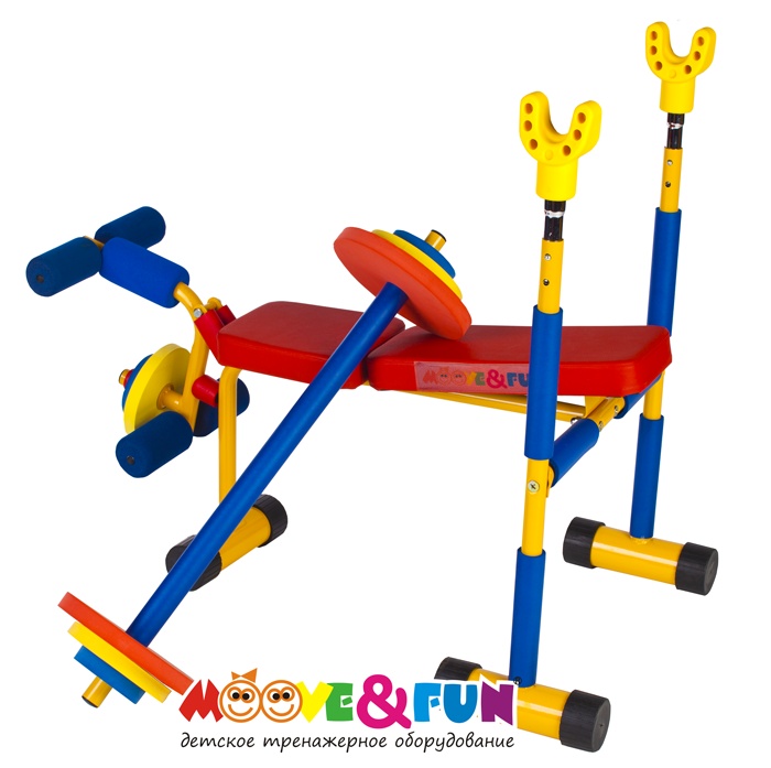 Эргономика тренажера специально разрабатывалась для детей. Имеет прочную и устойчивую конструкцию. Стойки имеют регулировку вылета. Диски (веса) штанги выполнены из полиуретана, что делает тренировки безопасными. Максимальный вес ребенка 50 кг.