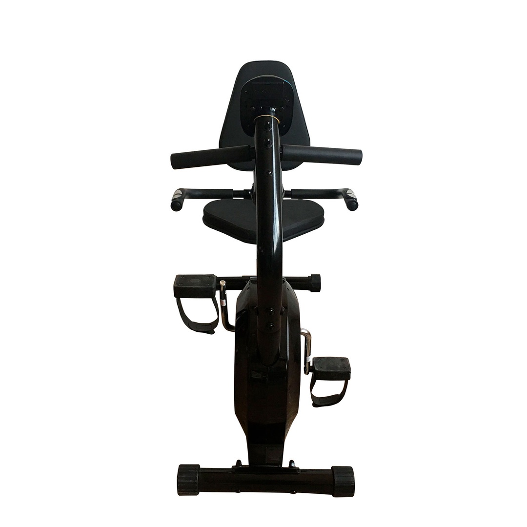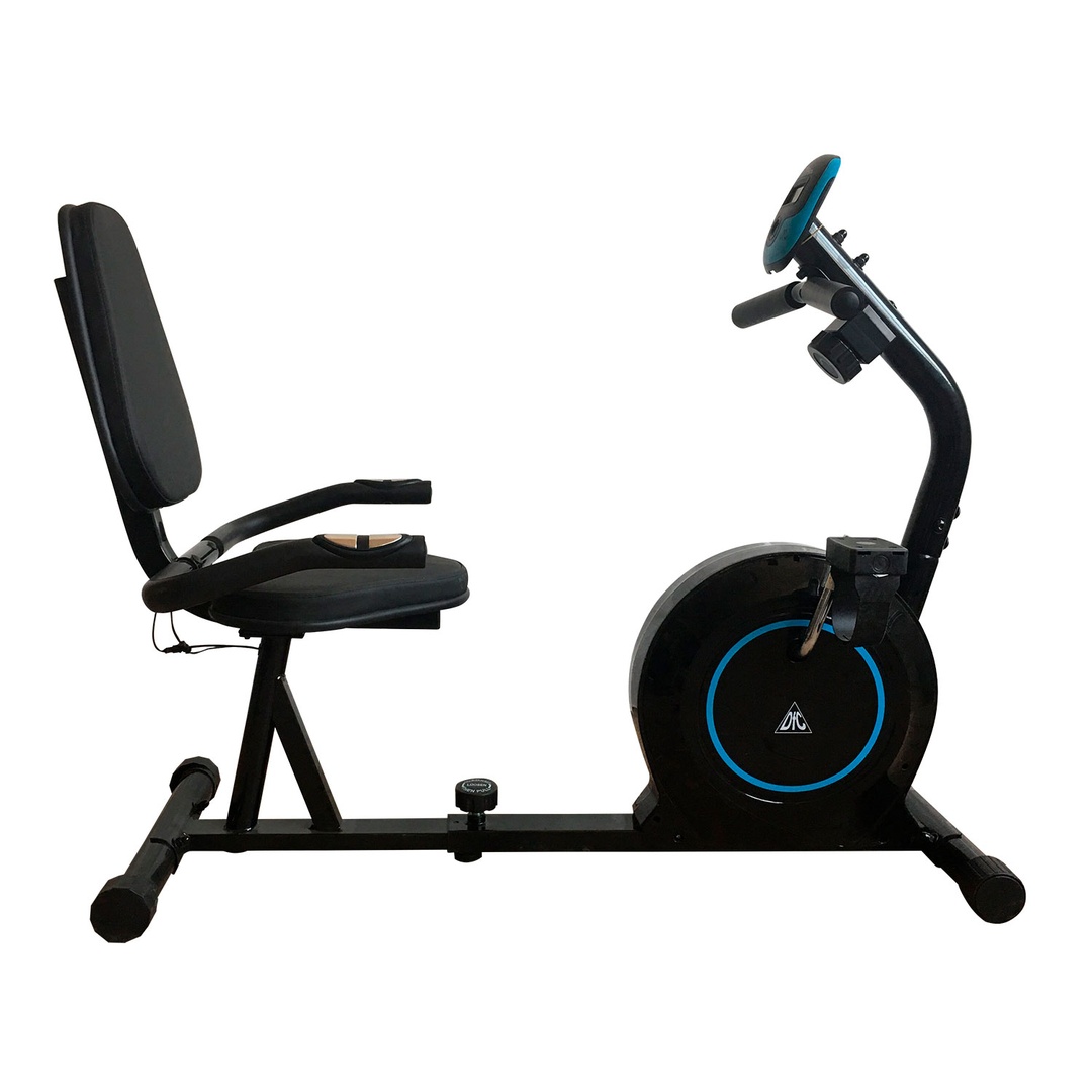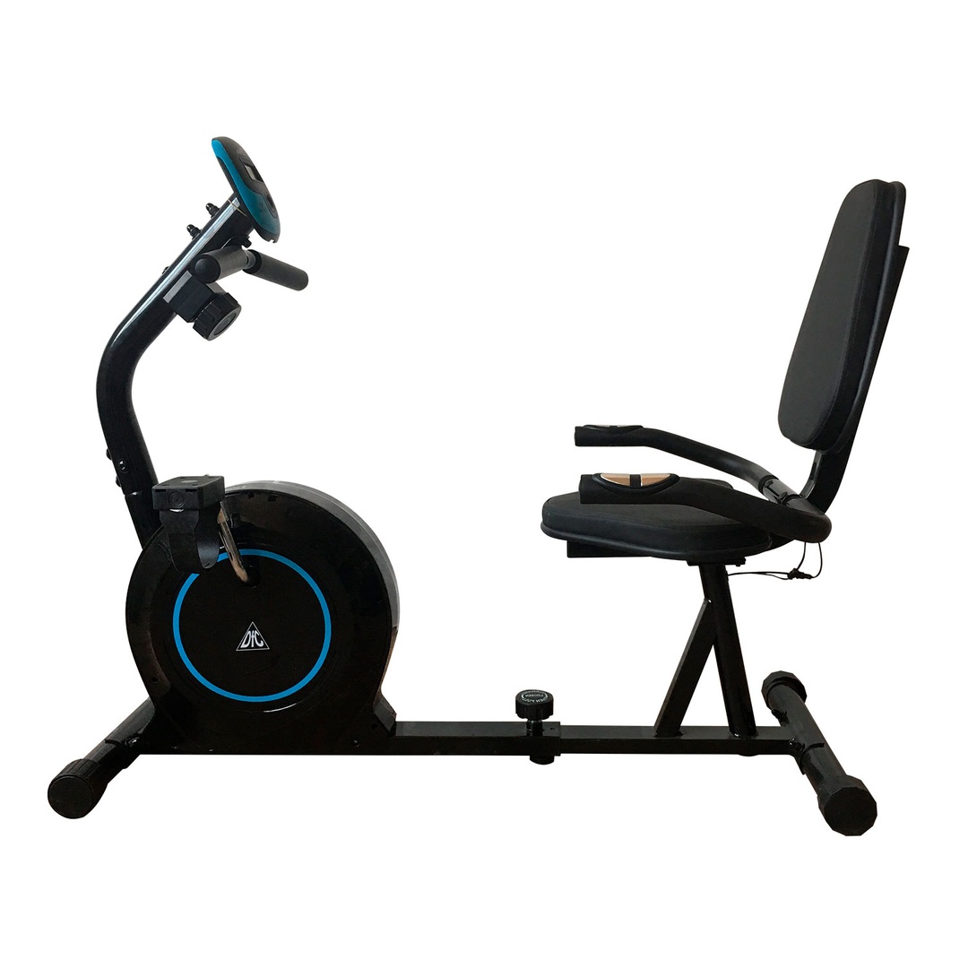 Горизонтальный велотренажер для домашнего использования. Магнитная нагрузка с механической регулировкой. Ручная регулировка изменения нагрузки с помощью рукоятки на стойке тренажера. 8 промежуточных положений с фиксацией.