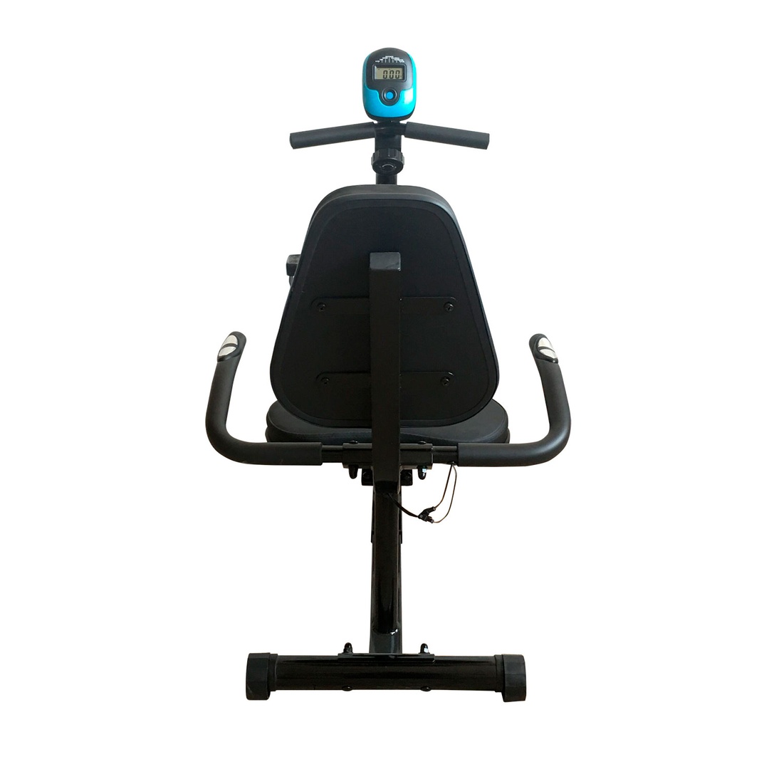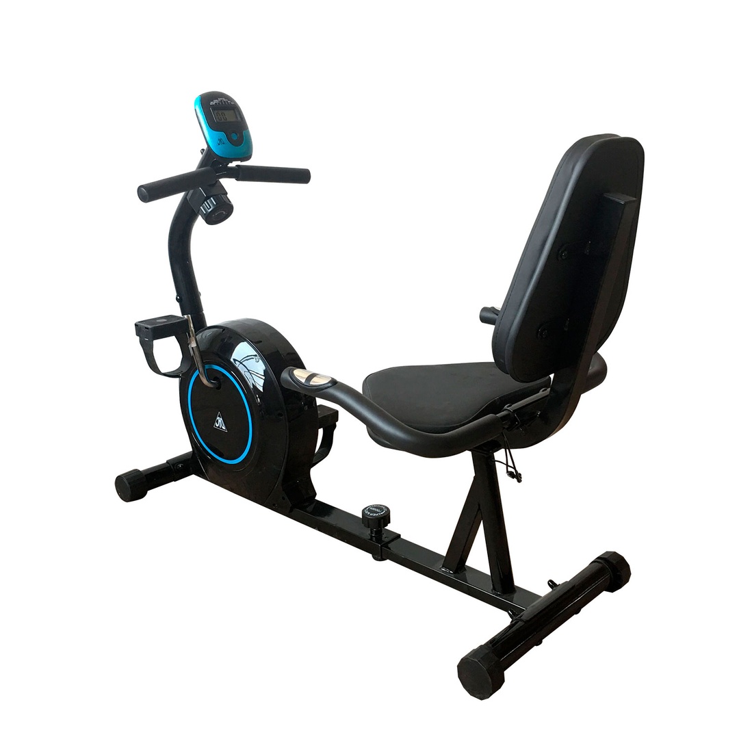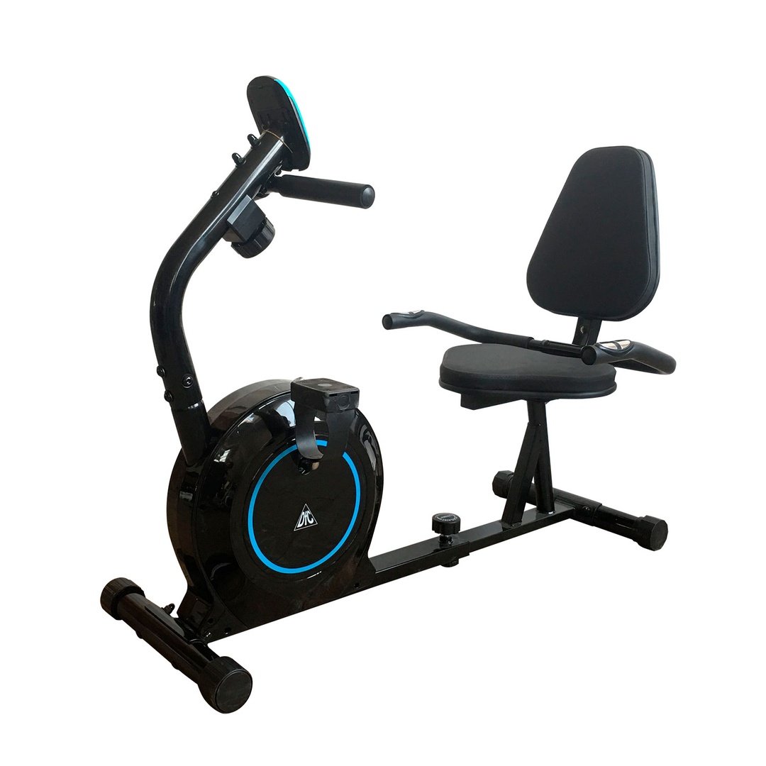 Горизонтальный велотренажер для домашнего использования. Магнитная нагрузка с механической регулировкой. Ручная регулировка изменения нагрузки с помощью рукоятки на стойке тренажера. 8 промежуточных положений с фиксацией.