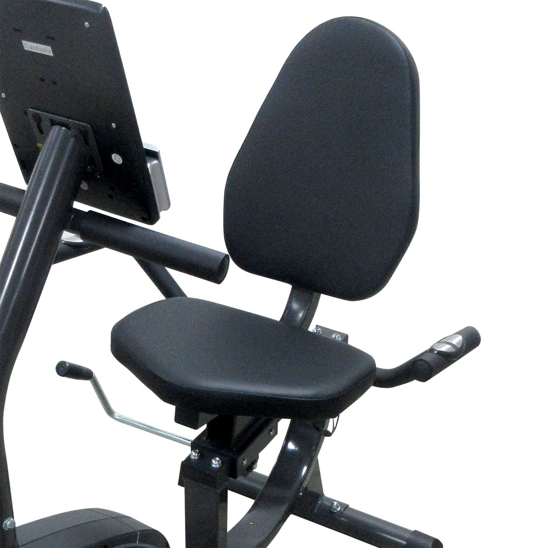 Велотренажер с удобной горизонтальной посадкой и бесшумной магнитной системой нагружения. Нагрузка имеет ручную регулировку с помощью ручки на стойке тренажера, 8 положений. Мягкое регулируемое сиденье с мягкой спинкой.