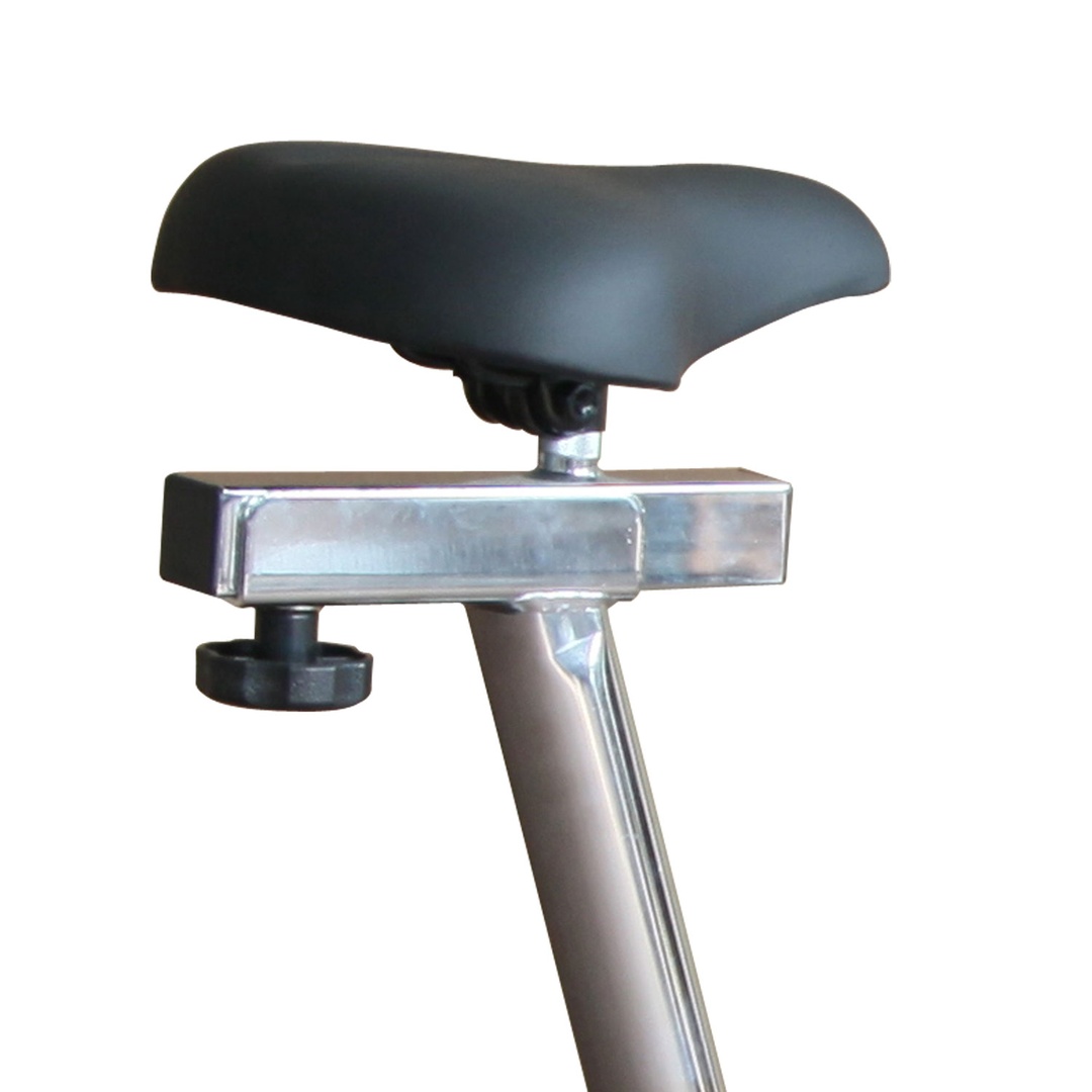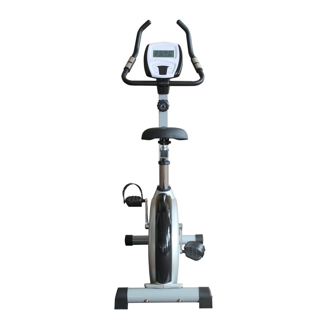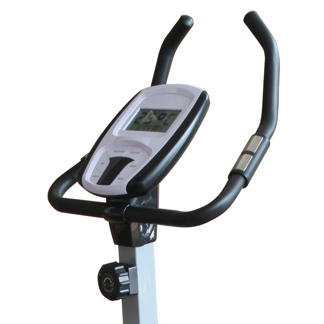 Компактный велотренажер с вертикальной посадкой и комфортным сидением.