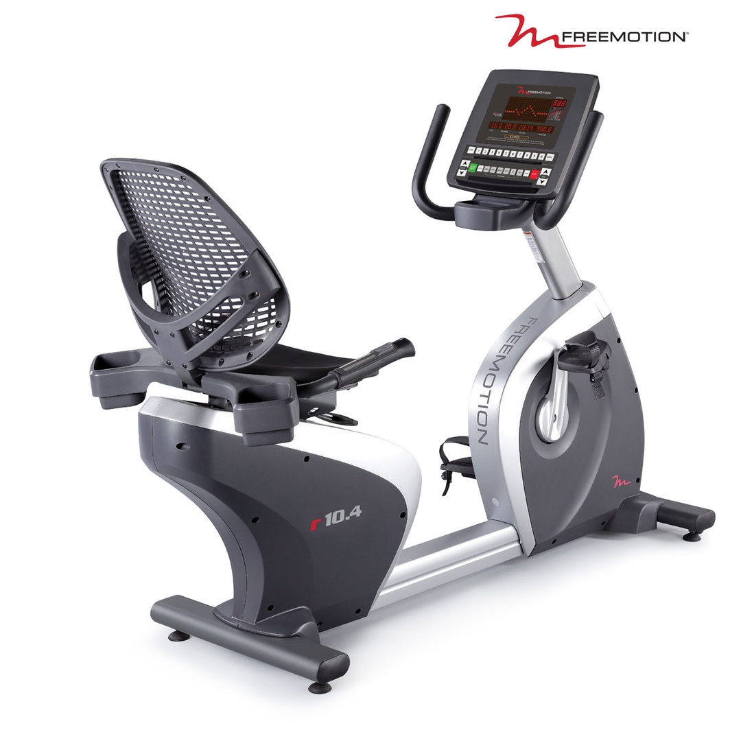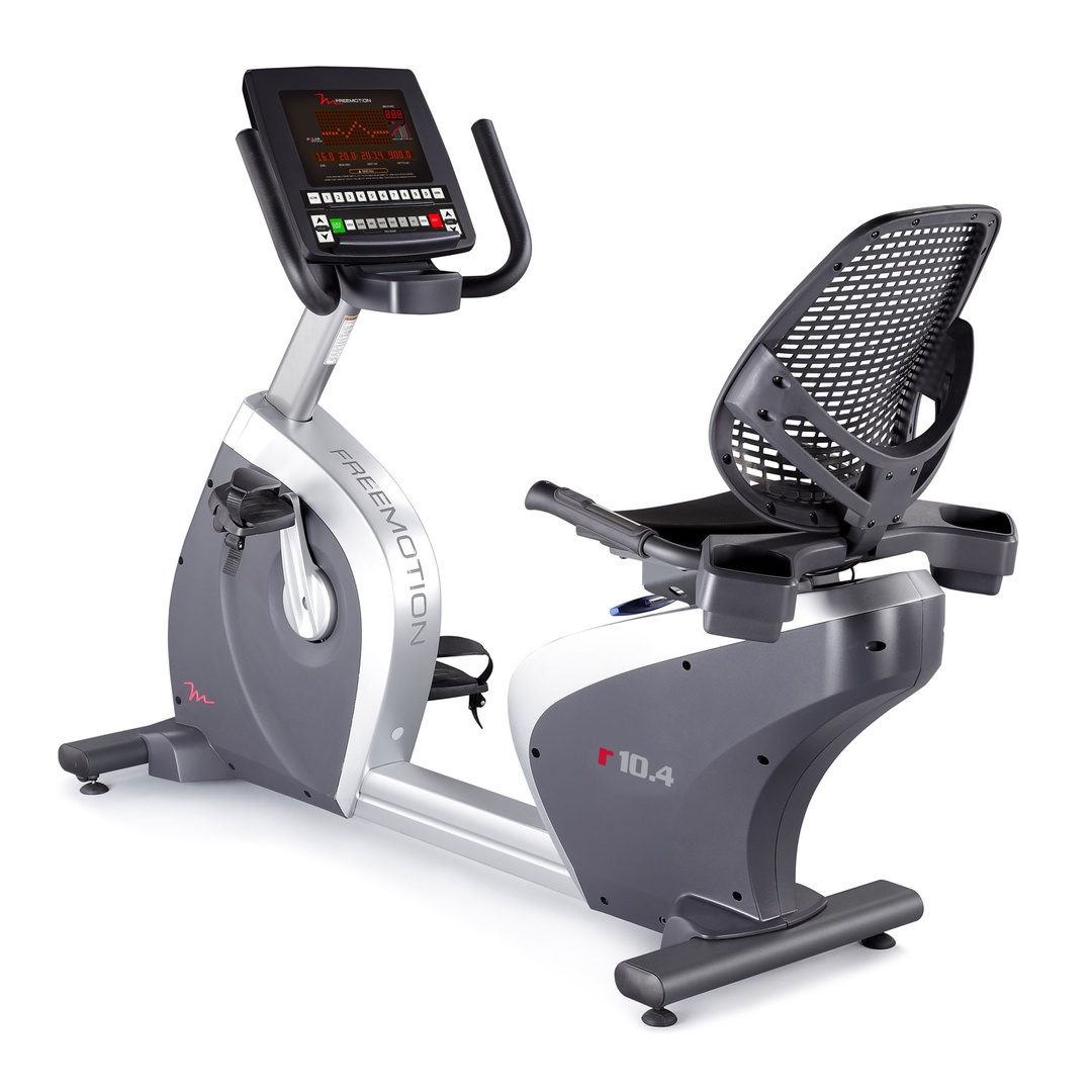 Профессиональный горизонтальный велотренажер Freemotion r10.4, выполненный в дизайне STEP THRU™.