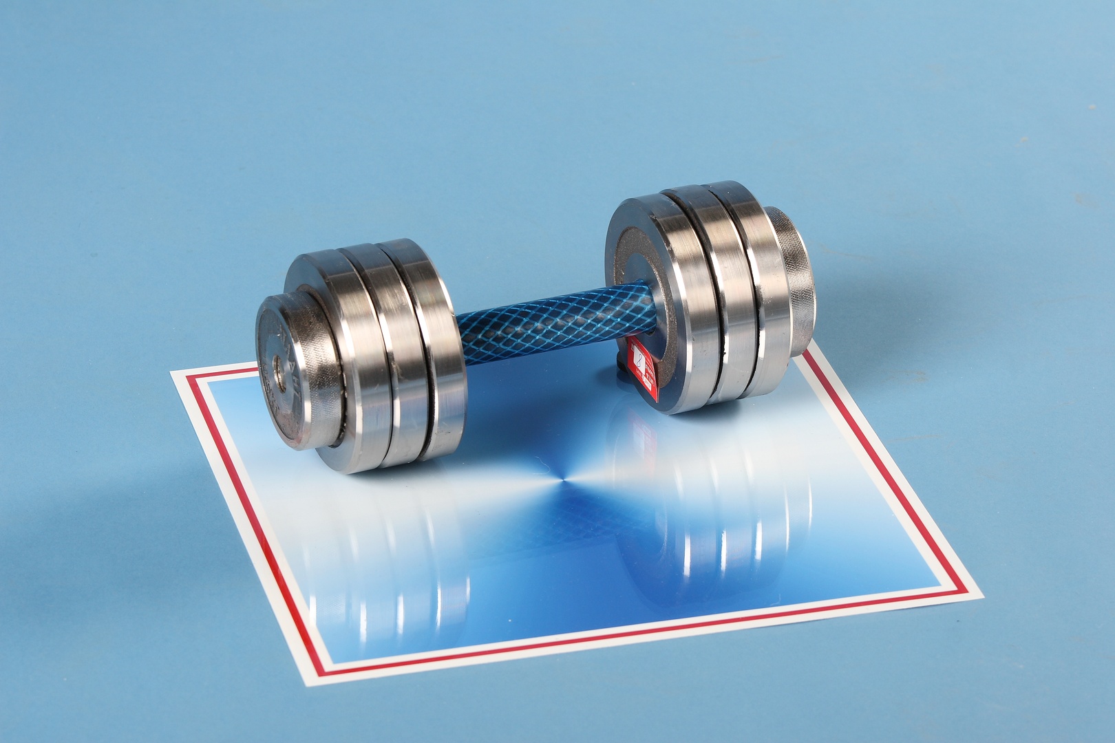 При изменении веса и количества дисков, раскручивается гайка, снимается цилиндр, убирается требуемый набор дисков весом по 0,5 кг, оставшиеся диски закрепляются внутренней гайкой, далее надевается цилиндр и закручивается внешней гайкой