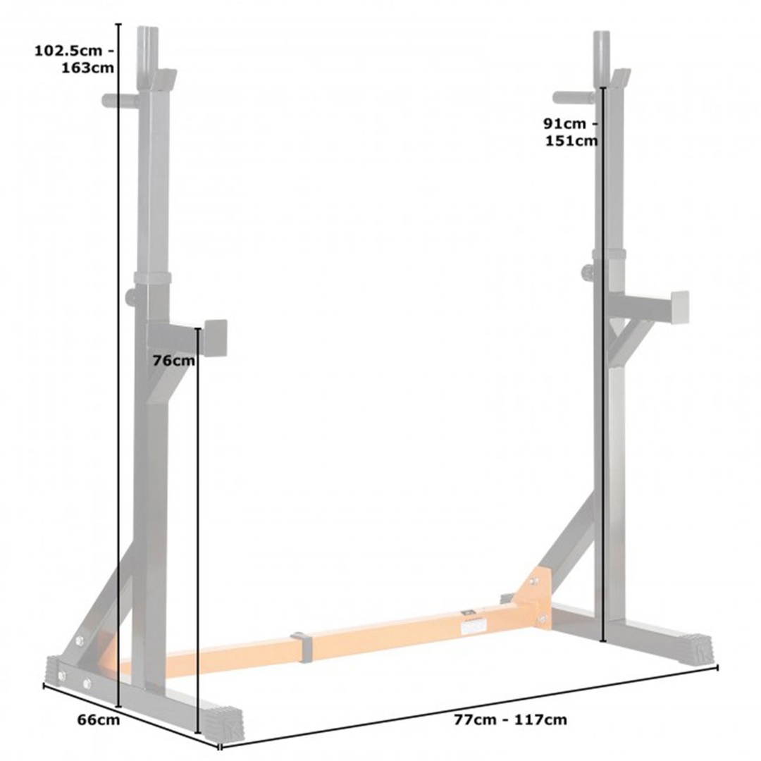 | Стойки под штангу регулируются | по ширине на расстоянии от 77 до 117 см друг от друга, 10 уровней с шагом 5 см |