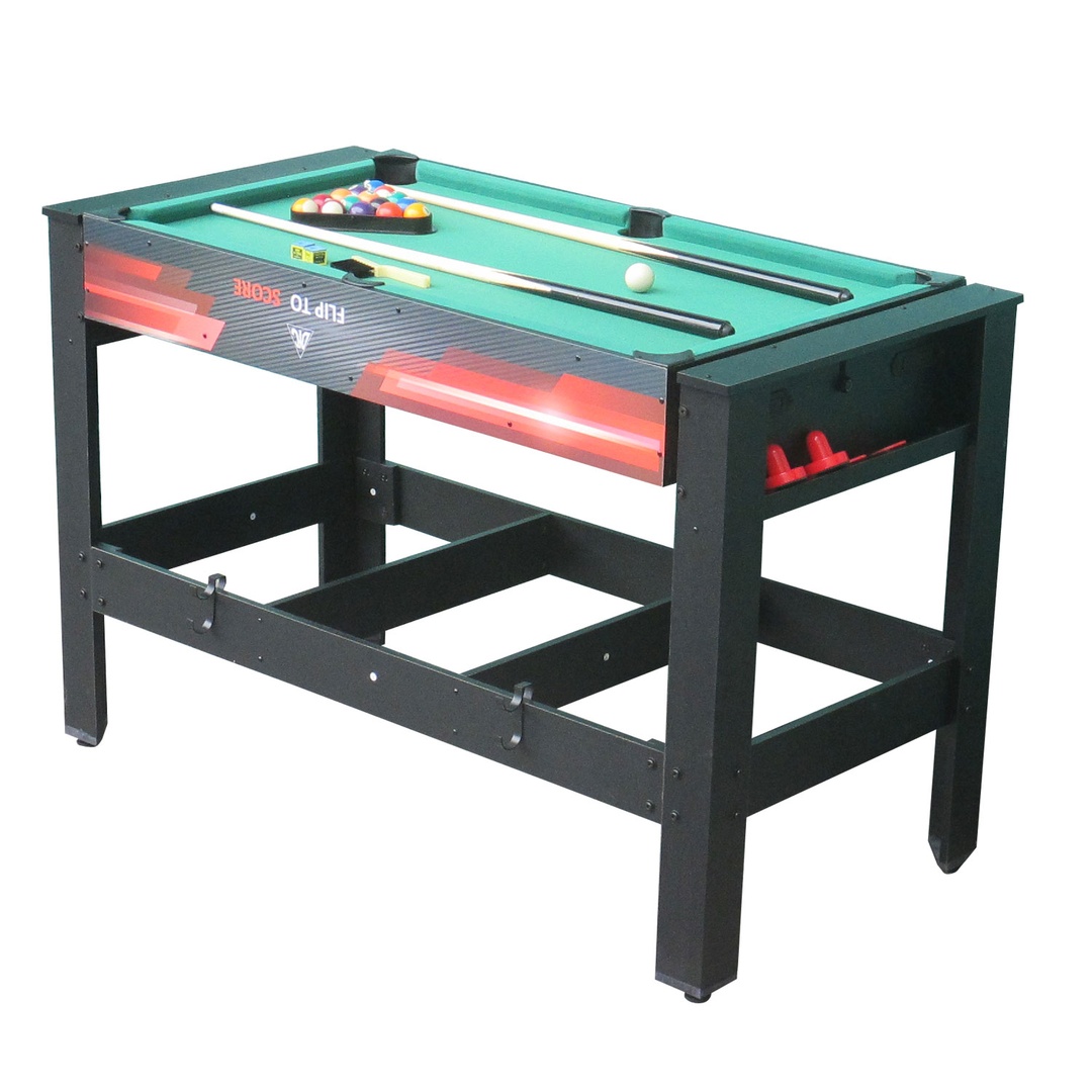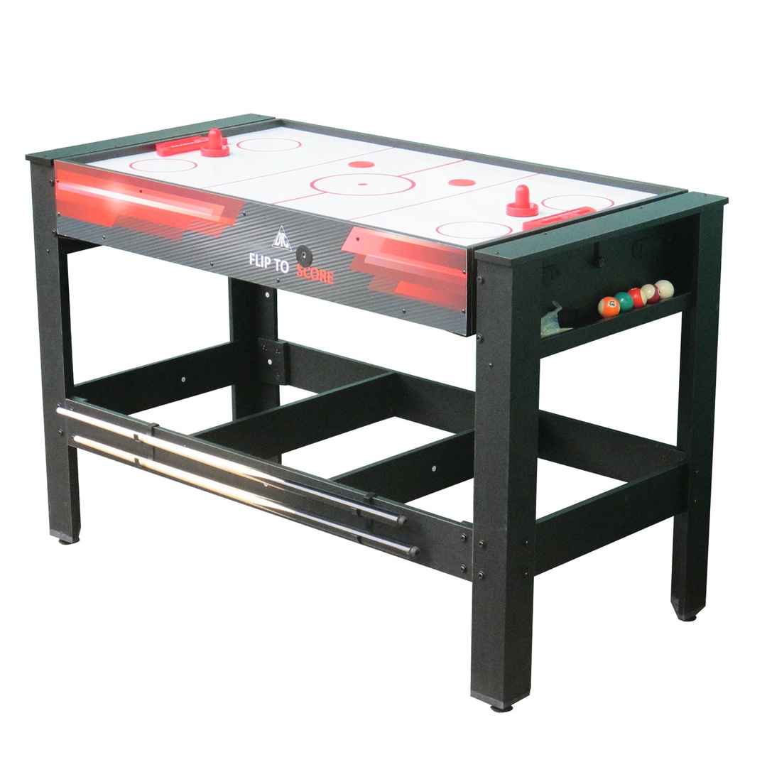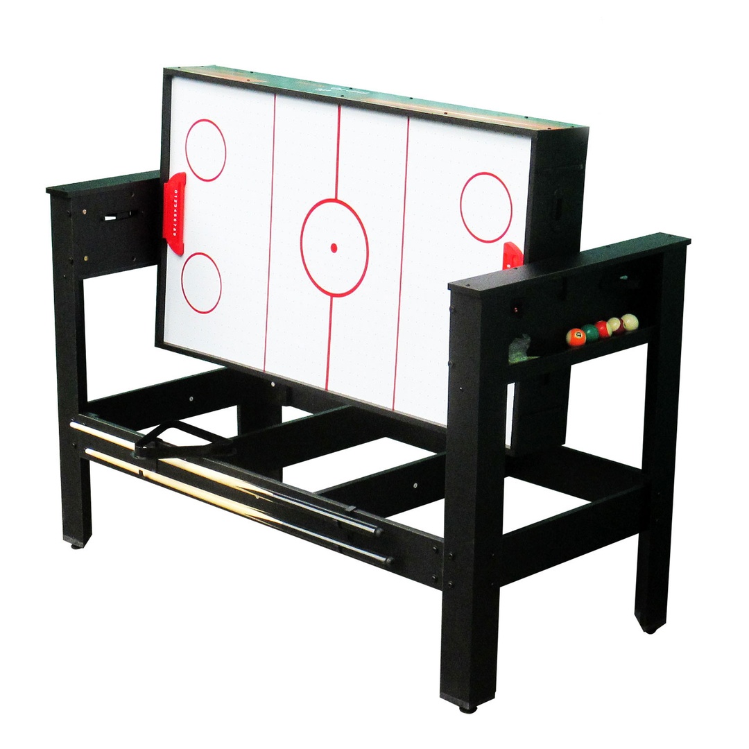 Размер стола 120х59,4х80 см. Размер упаковки 145,5х70,5х16,5 см. Вес 31,4 кг. В комплекте все необходимые аксессуары для иры в популярные игры. Бильярд: 2 кия 36" (90 см), 16.