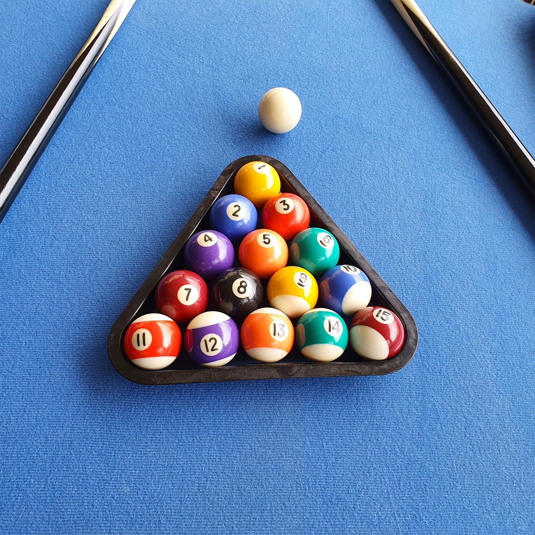Корпус выполнен: из специально обработанного. МДФ, сверху покрытого. ПВХ-пленкой. В комплекте все необходимые акссесуары: 2 кия, набор шаров, треугольник, щетка, мел. Размер.
