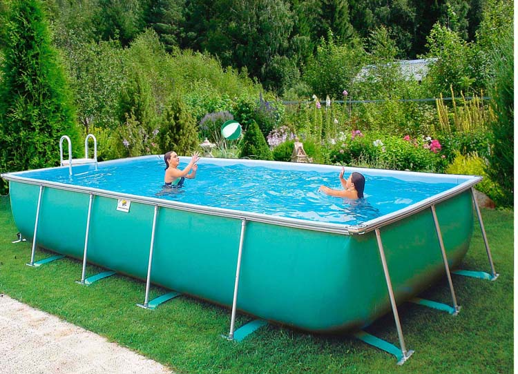 Резервуарной конструкцией называют сборно-расборные бассейны. В отличие от надувных, они идеально подходят для тех, кто не хочет строить стационарный водоём, но желает пользоваться бассейном более двух — трёх сезонов. Различные формы, а именно: круг, овал, восьмёрка, прямоугольник дают заказчику простор для творчества. Изготавливают такие бассейны из стальных листов на крепких опорных конструкциях. Внутрь вкладывают прочную плёнку. Если их сложить, то они будут настолько компактные, что можно перевозить на легковом автомобиле. Значительным плюсом является возможность установить бассейн самостоятельно, и не прибегая к земляным и бетонным работам, следовательно, ландшафт участка не изменится.