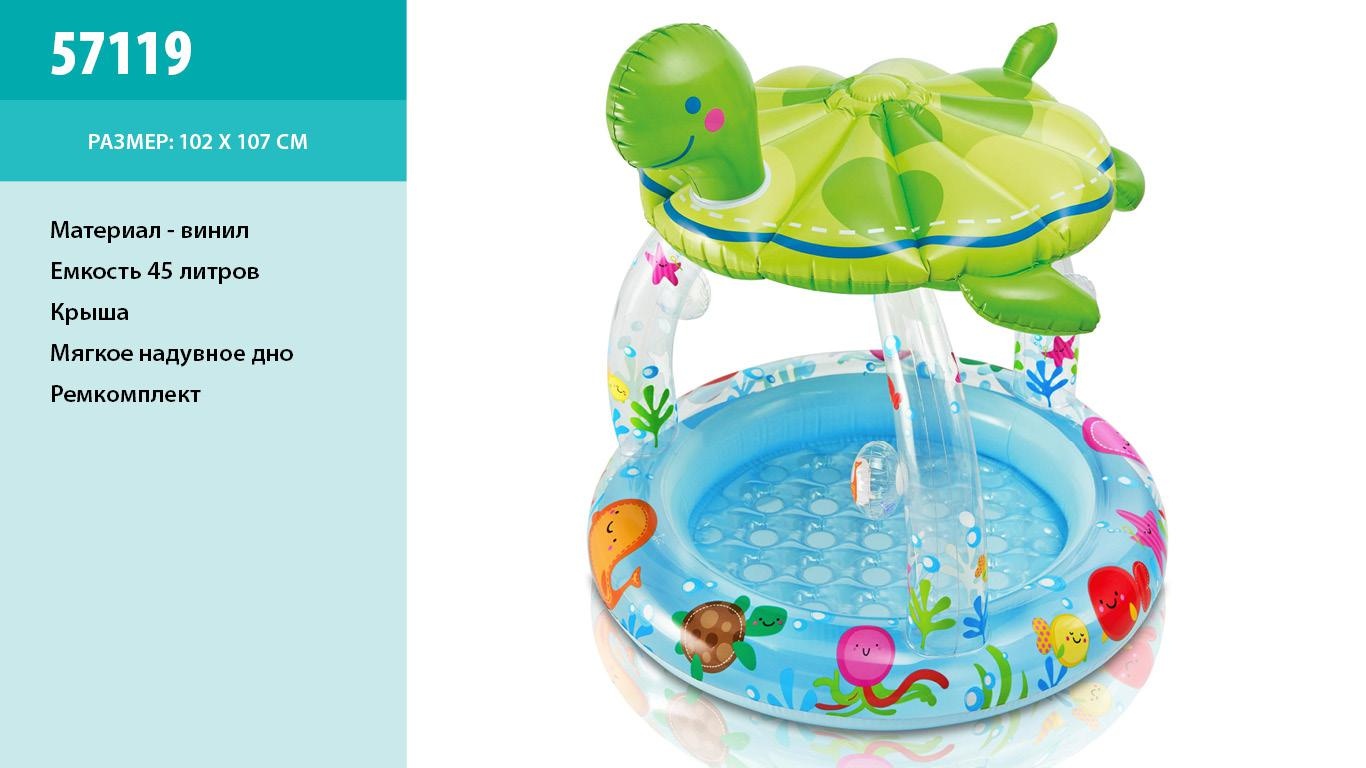 Детский надувной бассейн «Морская черепашка» intex 57119 c навесом в виде надувной черепашки отлично подойдет детям от года.
