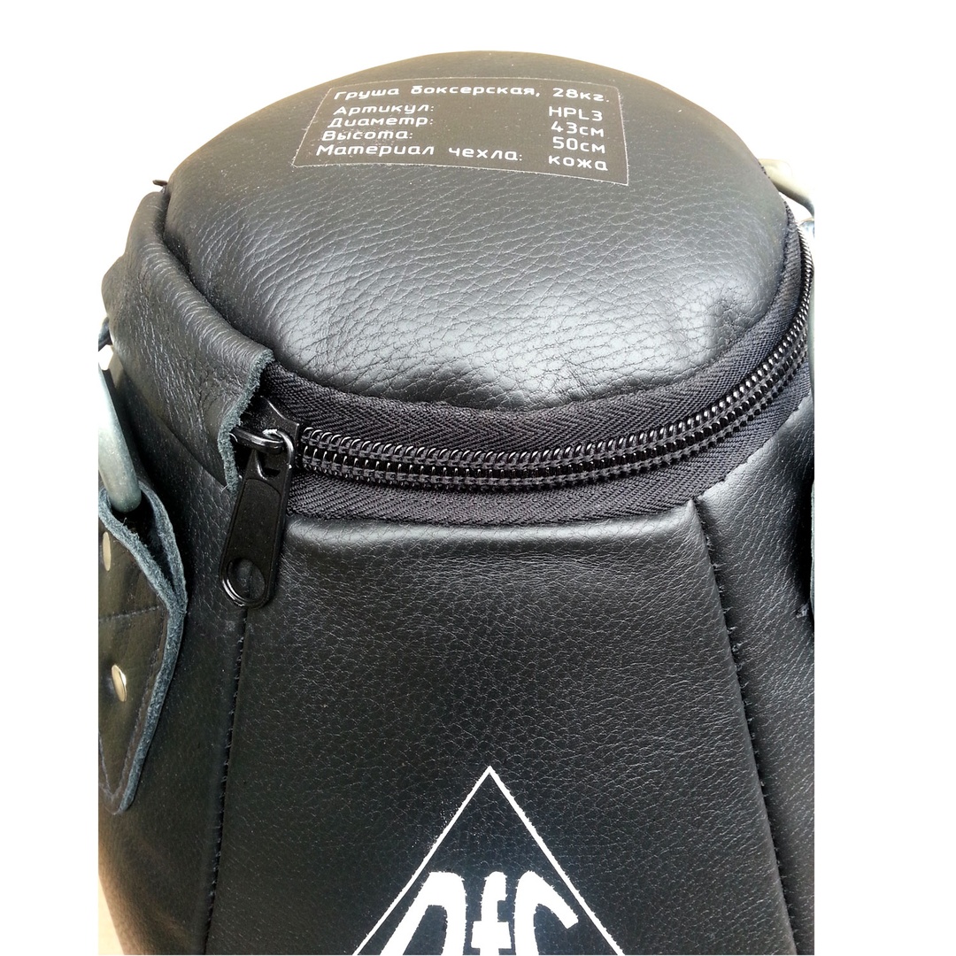 Груша изготовлена из высококачественной натуральной кожи толщиной 2.5 мм. Цвет груши черный. Для предотвращения деформации кожи изнутри мешок проложен высокопрочной тканью из ПВХ плотностью 630 г/м2.