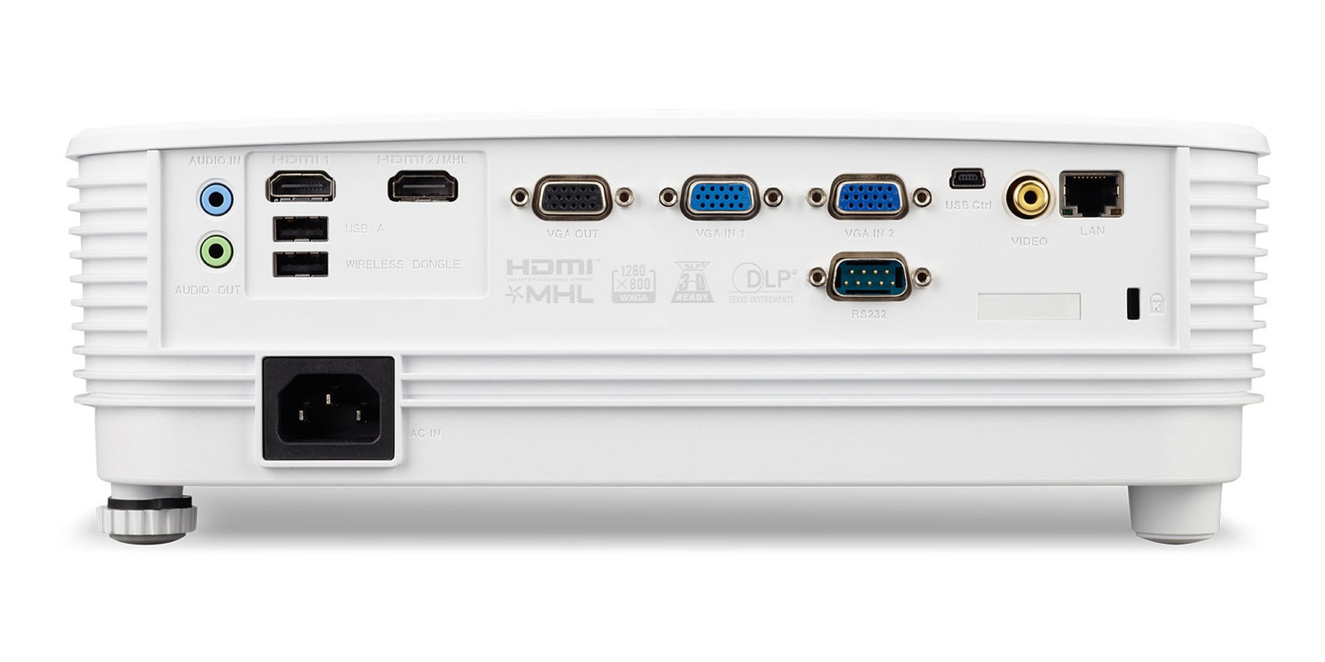 Acer P1350WB обладает высокими показателями контрастности и светового потока, которые соответствуют 20000:1 и 3700 лм. Это позволяет создать комфортное для восприятия изображение, позволяющее сделать презентации привлекательными и понятными. Проектор не создает при работе много шума, поэтому создает комфортные условия для работы: уровень шума модели равен 30 дБ. Устройство поддерживает технологию Ethernet.