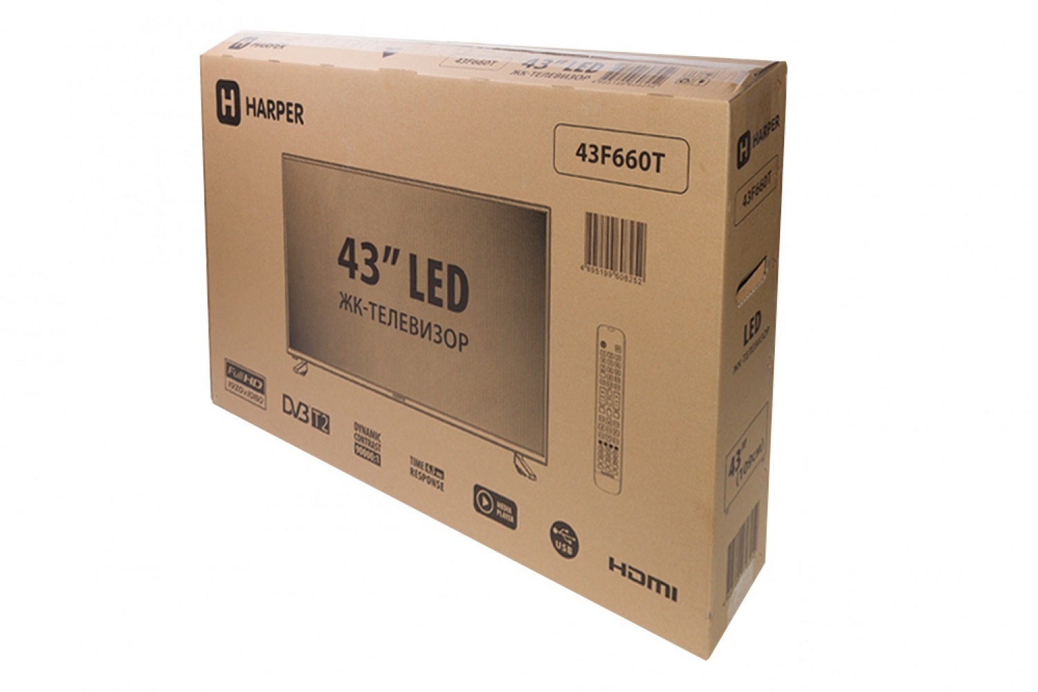 Телевизор Harper 43F660T оснащен высококачественным жидкокристаллическим экраном со светодиодной подсветкой, полностью готов для воспроизведения видео высокого разрешения FULL HD.