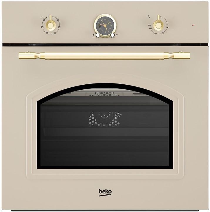 Духовой шкаф Beko OIE27207C выполнен в бежевом цвете. Благодаря своему дизайну он прекрасно дополнит кухню, оформленную в стиле ретро.
